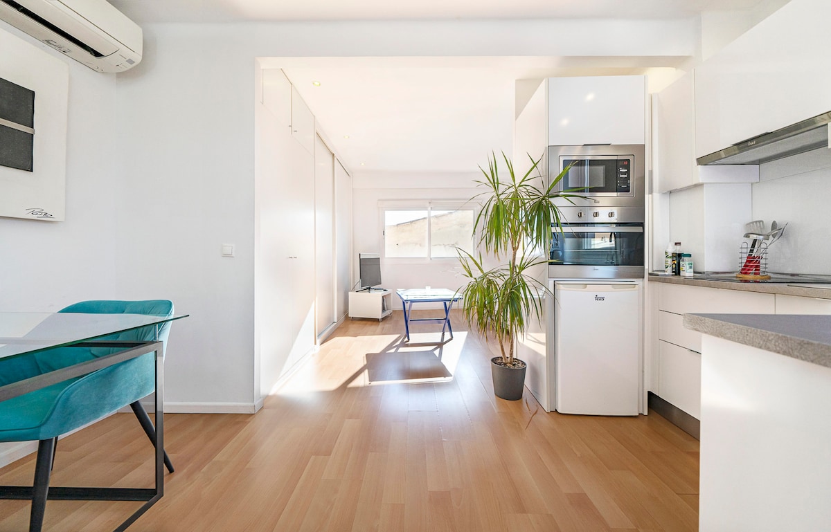 在 Palma de Mallorca 的 公寓 有 3 卧室 有 可容纳 6 人. 住宿 有 112 m². 配有 熨斗, 保险箱, 互联网接入 (Wi-Fi无线网), 吹风机, 阳台, 热泵供暖, 空调, 1 电视, 卫星电视 (语言: 西班牙语, 英语, 德语). 该 开放式厨房的 玻璃陶瓷 厨房, 配备有 冰箱, 微波炉, 烤箱, 冰柜, 洗衣机, 吹风机, 洗碗机, 碗碟/刀具, 餐具/厨房, 咖啡壶, 面包机, 烧水壶 和 榨汁机.