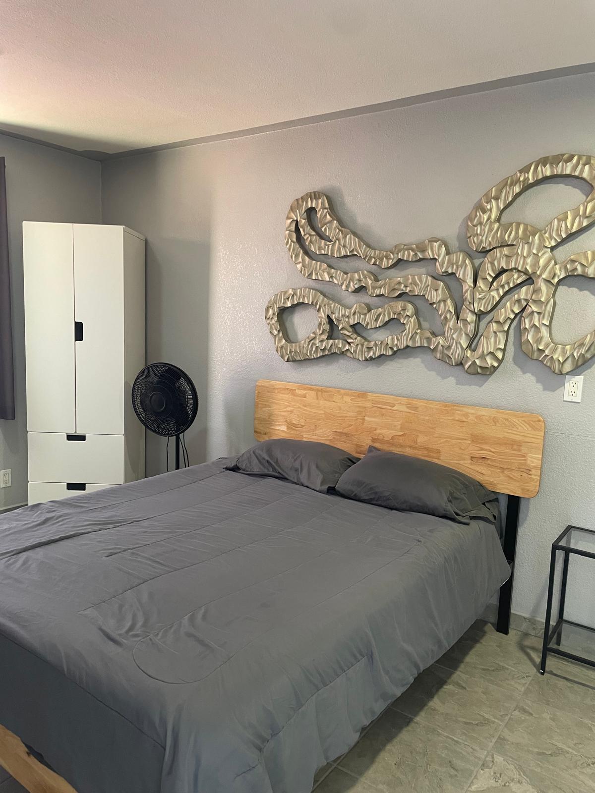 Tranquila habitación anexa con cama matrimonial, clóset y baño completo. La habitación es completamente independiente a la casa por lo que gozarás de la privacidad y comodidad ideal para parejas o viajeros solitarios.