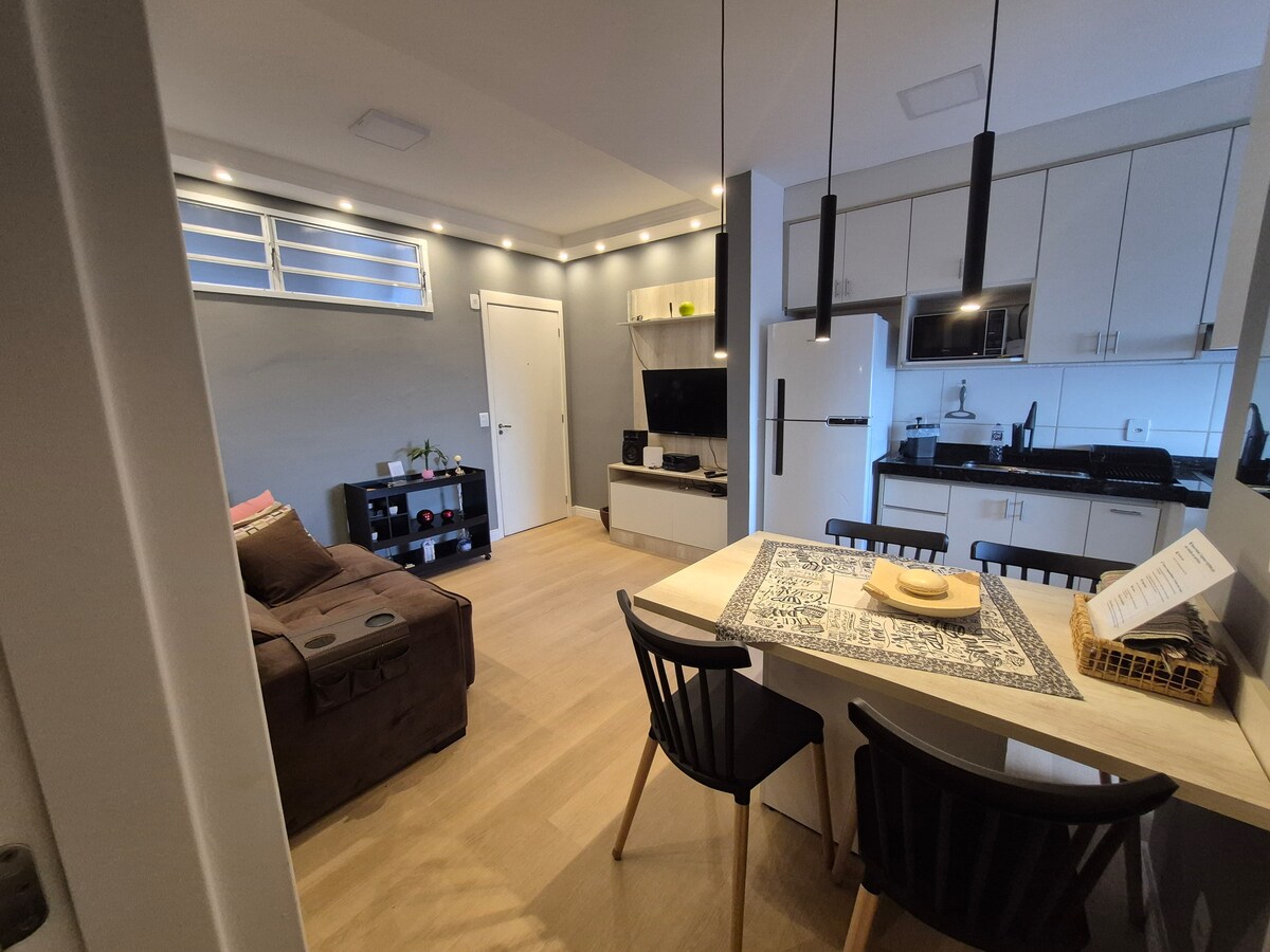 Apartamento completo, acomoda confortávelmente até 2 pessoas. Possui um quarto com cama queen, ar condicionado, espaço " home office", closet. Banheiro privativo, cozinha completa. TV a cabo na sal , e Wi-Fi incluso. Condomínio com portaria 24 horas, piscina, academia e lavanderia para uso gratuito. Uma vaga de garagem coberta inclusa. Localização próxima ao centro, supermercado, farmácia e restaurantes. Toalhas, roupa de cama, cobertas e travesseiros estarão disponíveis. Vizinhança tranquila.