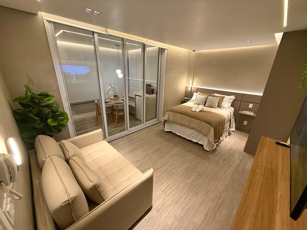 Experience One Eleven in Vila Olimpia. This modern apartment features large windows with breathtaking city views and natural light. The unit boasts 600 Mbps internet and a 4K HD TV. For total comfort, it has a Hot/Cold AC system: 27,000 BTU/h unit in the living room and 10,000 BTU/h in the bedroom. The bedroom is quiet and dark for a restful sleep. Impeccably maintained, you’ll be walking distance to top restaurants and business hubs—a safe, upscale retreat with a stunning urban backdrop.