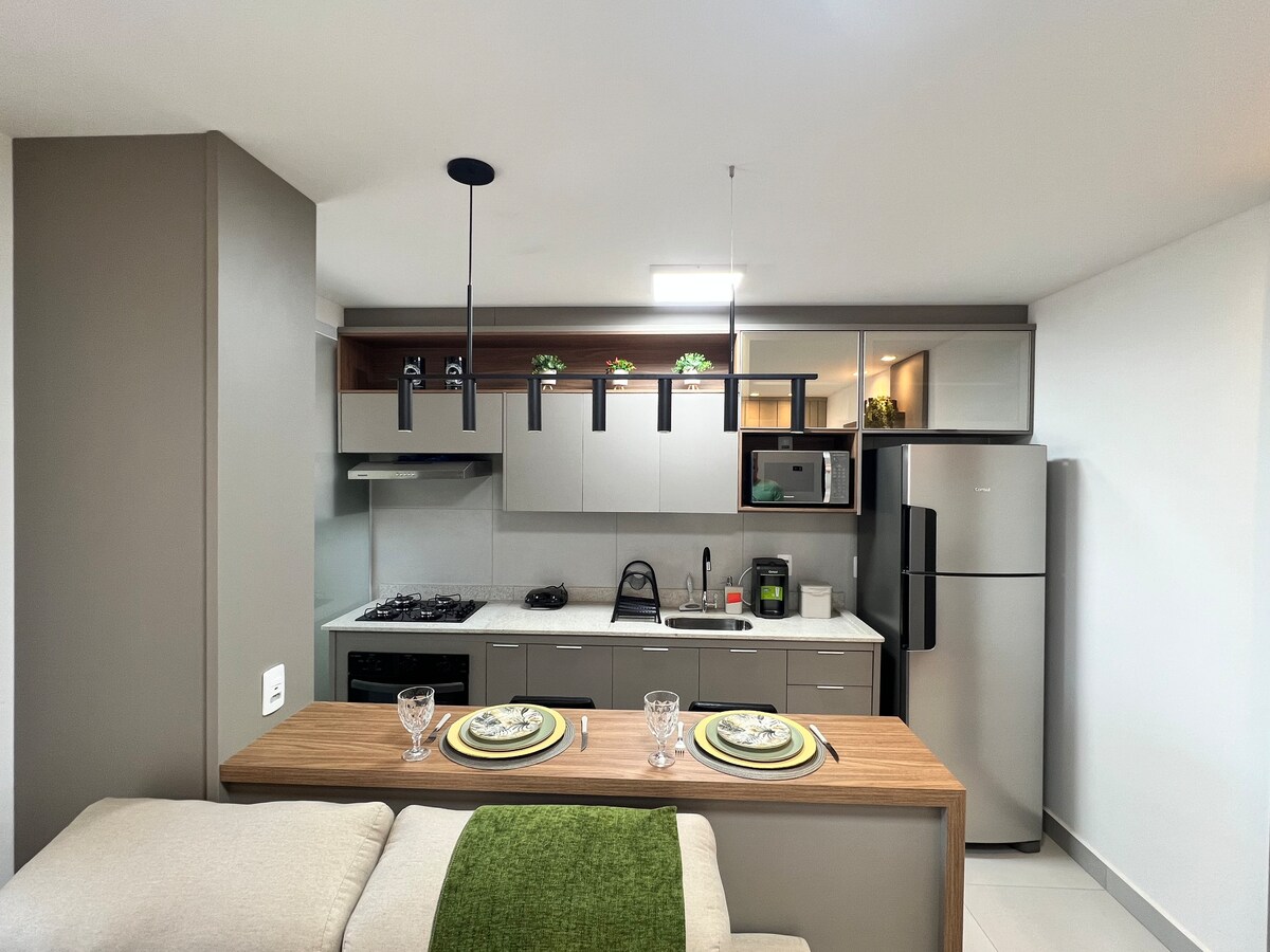 Studio Confort Moderno • Ar • Garag. Próx. Nações.