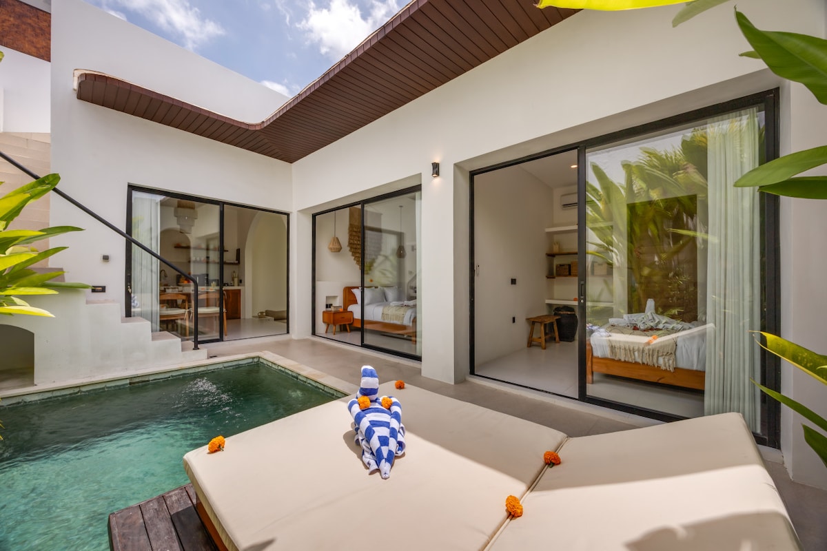 Experience the meaning of luxury living at this Seseh loft. Upon arrival, be greeted by a refreshing plunge pool, setting the stage for a truly unforgettable getaway. The spacious living area boasts a soaring ceiling and abundant natural light, creating a warm and inviting ambiance. Enjoy a movie night on the 65-inch TV or prepare a gourmet meal in the fully equipped kitchen.