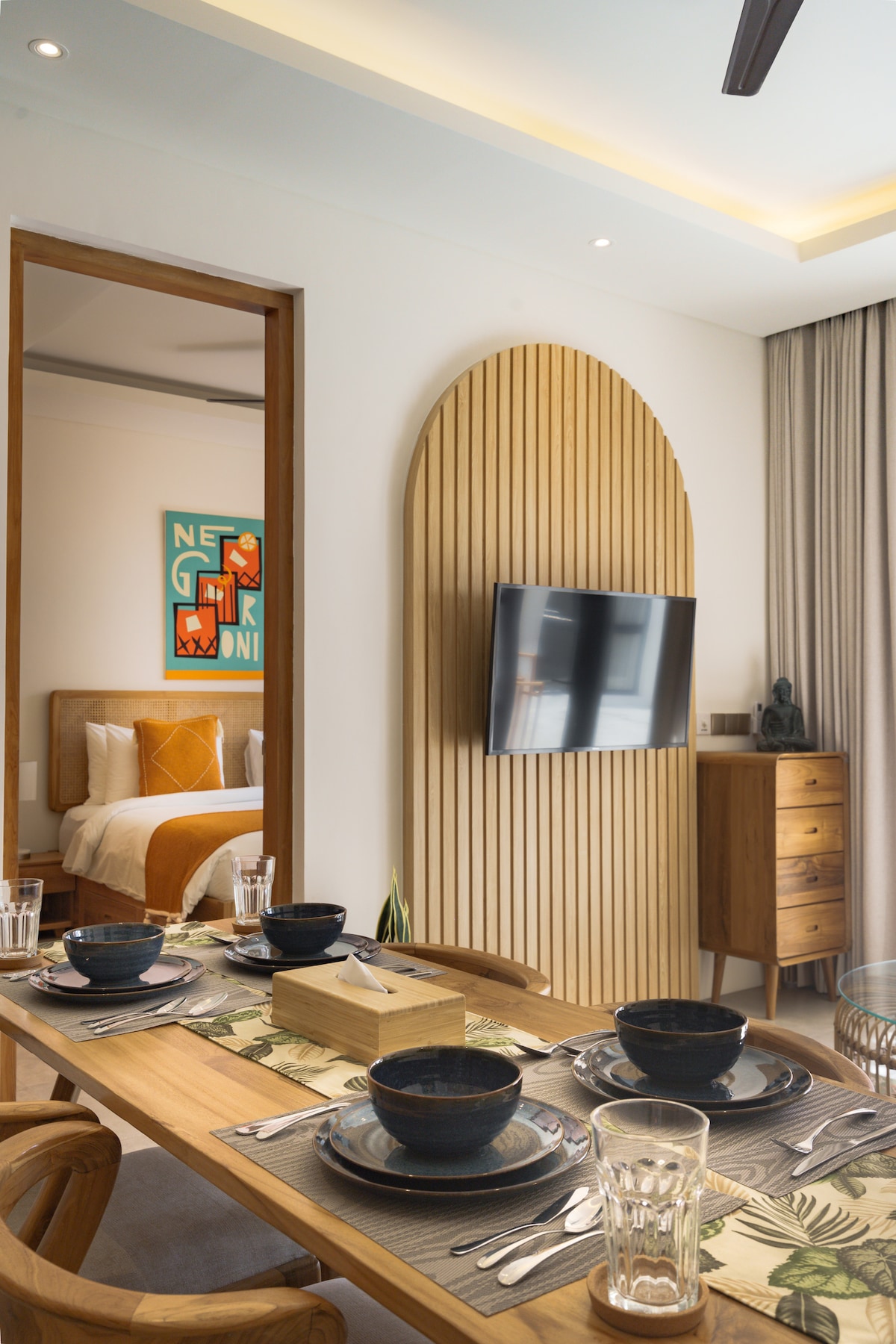 A place to arrive – with a private pool and space for yourself. Casa Sarasvati 2 is a modern two-room apartment with a separate bedroom, open living area and private pool – quietly located in Pererenan, just minutes from Canggu. Ideal for those who don’t just want to visit Bali, but live here for a while – with comfort, privacy and a clean, minimal design. A well-kept home away from home – modern, open, yet inviting.