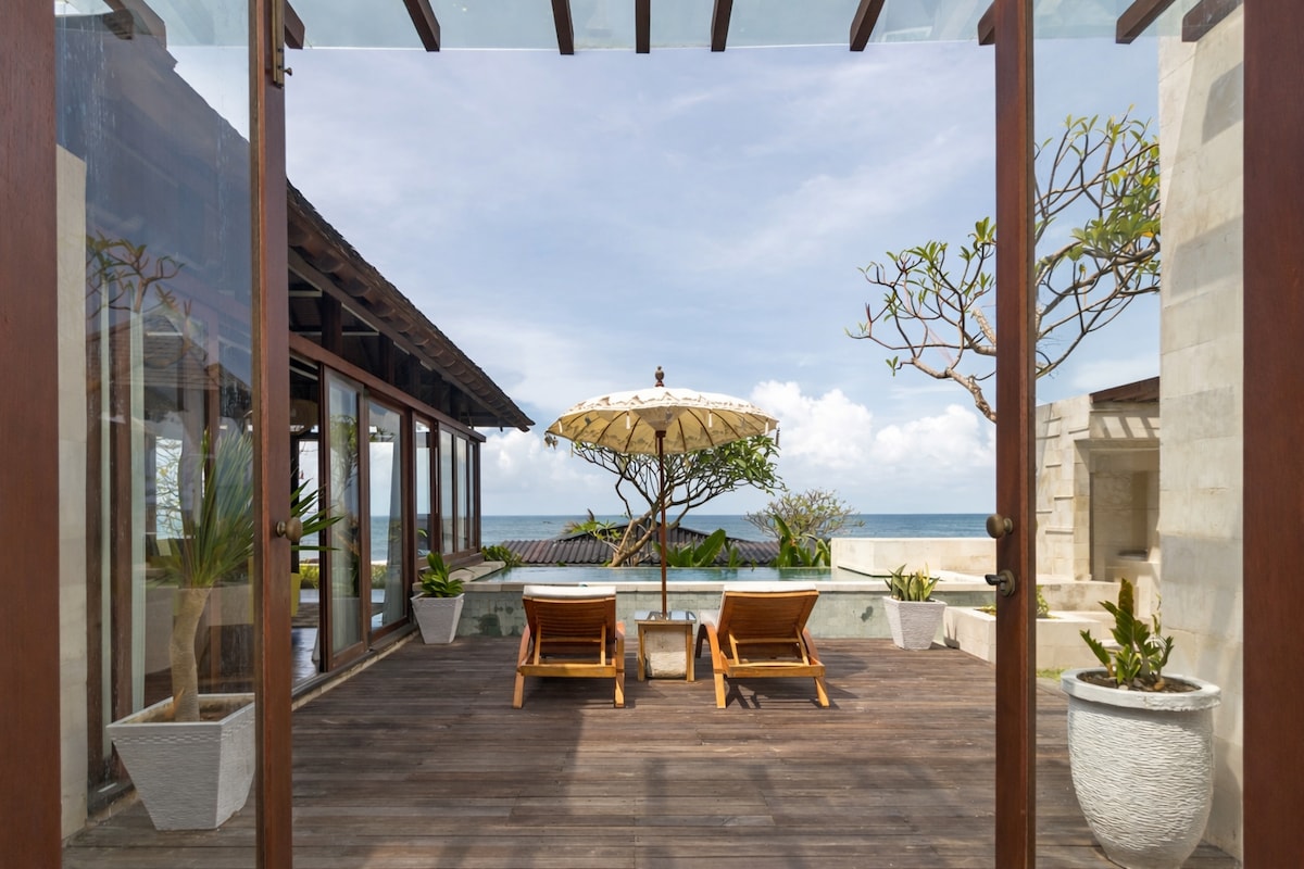 Villa Sansil is located ON the beach overlooking Pantai Seseh - close to the popular Canggu area. The fully staffed villa has 3 large 40sqm bedrooms with half-open 25sqm bathrooms. Extra beds are available on request. Get spoiled with your private chef who can cook both Asian and Western cuisine and have our lovely staff bring you fresh juices while you relax in the pool. Restaurants are only minutes away. Surf in front of the house or walk towards Echo Beach to meet your competition.