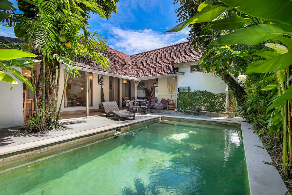Welcome to Villa Suksma – your serene 2BR hideaway just 5 minutes from Echo Beach & La Brisa Bali. Surrounded by jungle and a peaceful river, it’s the perfect blend of nature and comfort. Lounge by your private pool, enjoy the open-air living area, and rest deeply in cozy bedrooms. Ideal for couples, families, or friends seeking a stylish, tropical escape with modern amenities. Experience the magic of Bali from your very own sanctuary. Please note: There are construction works across the river,
