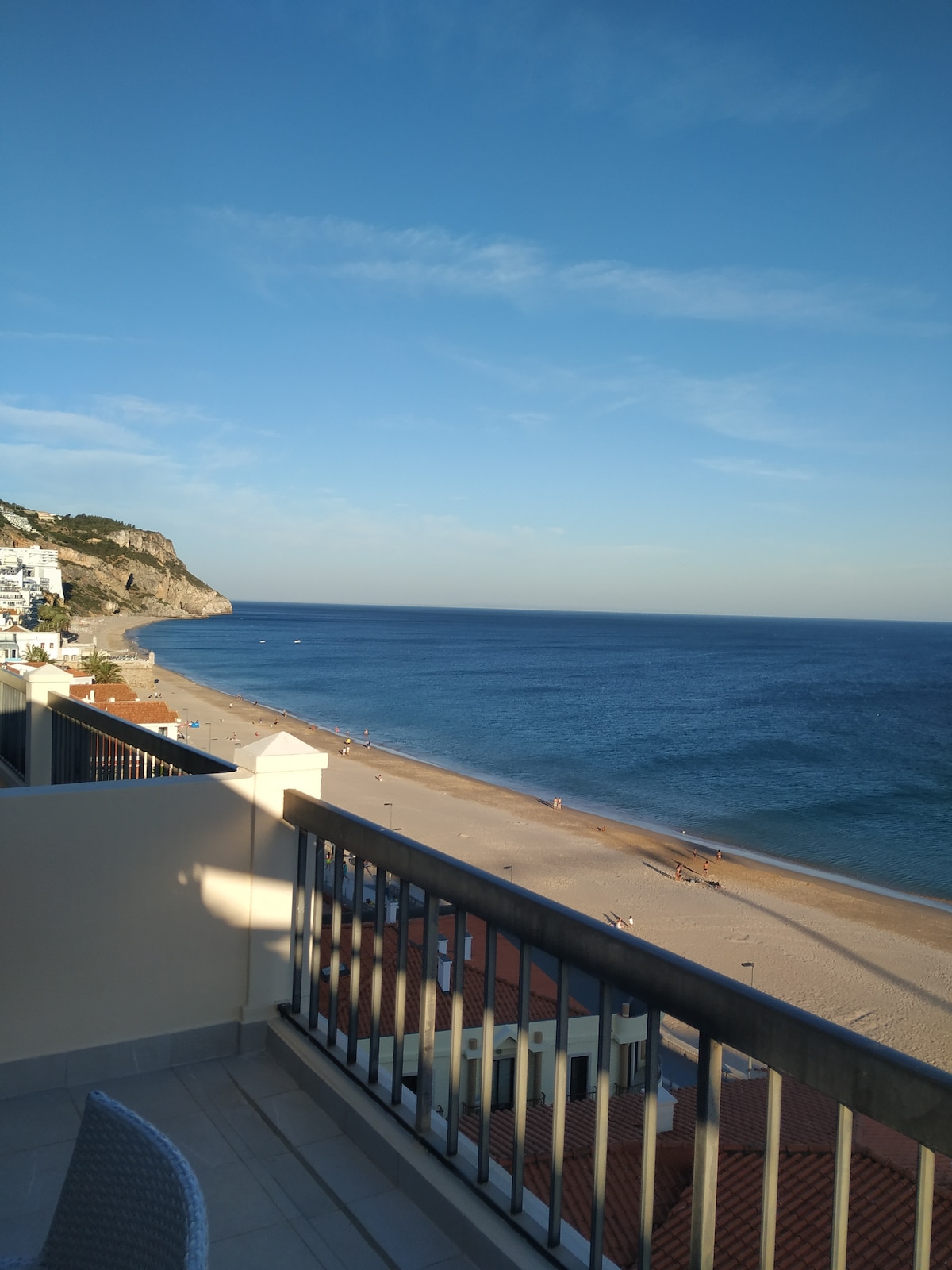 Spectacularly located, modern flat, offering 180º unobstructed panoramic views of the Atlantic ocean. The spacious open floor plan and double balcony enable a wonderful holidaying experience. The beach is accessible by foot (5 minutes). Free parking. Our associate in Sesimbra will meet you at the building main entrance to let you in and hand over the keys. My father Jose, a co-host, will assist you via email/mobile/WhatsApp - his mobile number is printed on the reservation pdf. 28513/AL