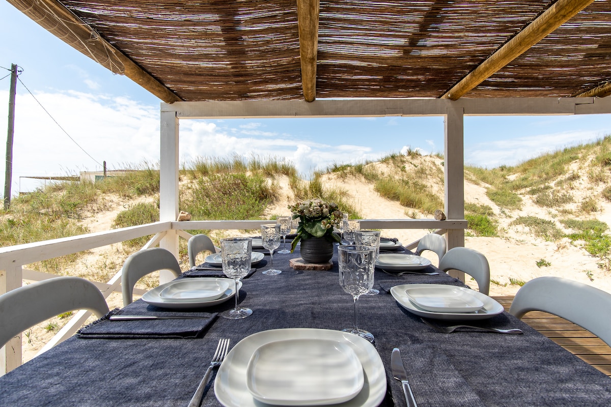 PARTIES ARE NOT ALLOWED This charming seaside Cabana is located directly on Praia da Mata, one of the most beloved beaches of Lisbon's famous Costa da Caparica, a gorgeous stretch of white sand beach dotted with seafood restaurants, surf schools and candy-colored cottages. Nestled in the dunes, Cabana Branca is big enough for friends or families to share, a stone's throw from the ocean's edge yet completely hidden from tourists. Caution: you need to bring your drinking water.