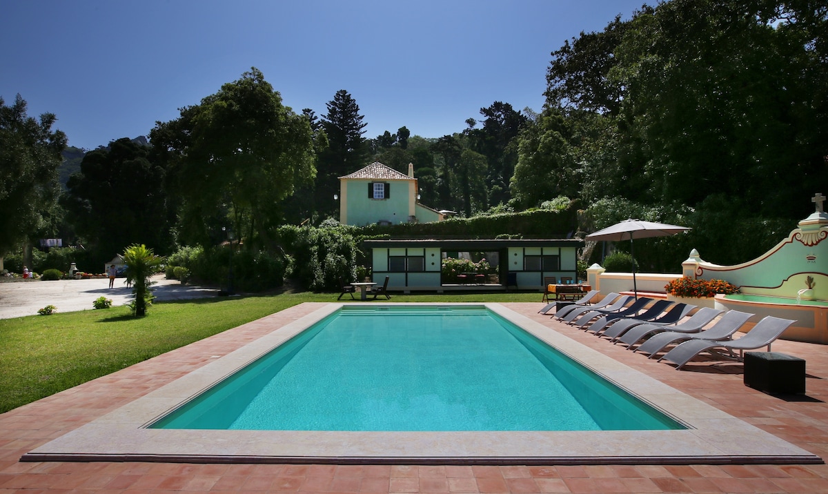 Villa Cintra is a set of Two Houses of the 19th century, restored, located in the historic center of Sintra. With beautiful gardens and a private swimming pool. The perfect place to relax and do long walks surrounded by luxuriant vegetation. Private Parking inside the property. Bus stop at the gate. All sorts of transports are available nearby. 10mn away from the beach by car, with a wide choice of bars and restaurants.