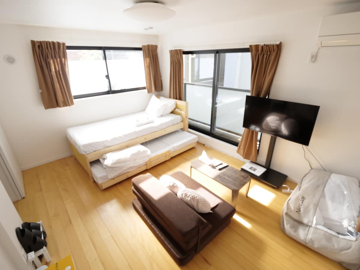 Welcome to the Guest House for family, in Shinagawa (Togoshi) area. It is a new guest house that has just opened in November 2019. It is located in a very convenient area, easy access to Airports, Shinkansen, and famous sightseeing spots. 3-minute from the Guest House, you can visit a famous shopping street, where you can enjoy around 400 shops and restaurants. Also, just beside the Guest House, there is a park and a lawn square where you can enjoy picnic and cherry blossoms.