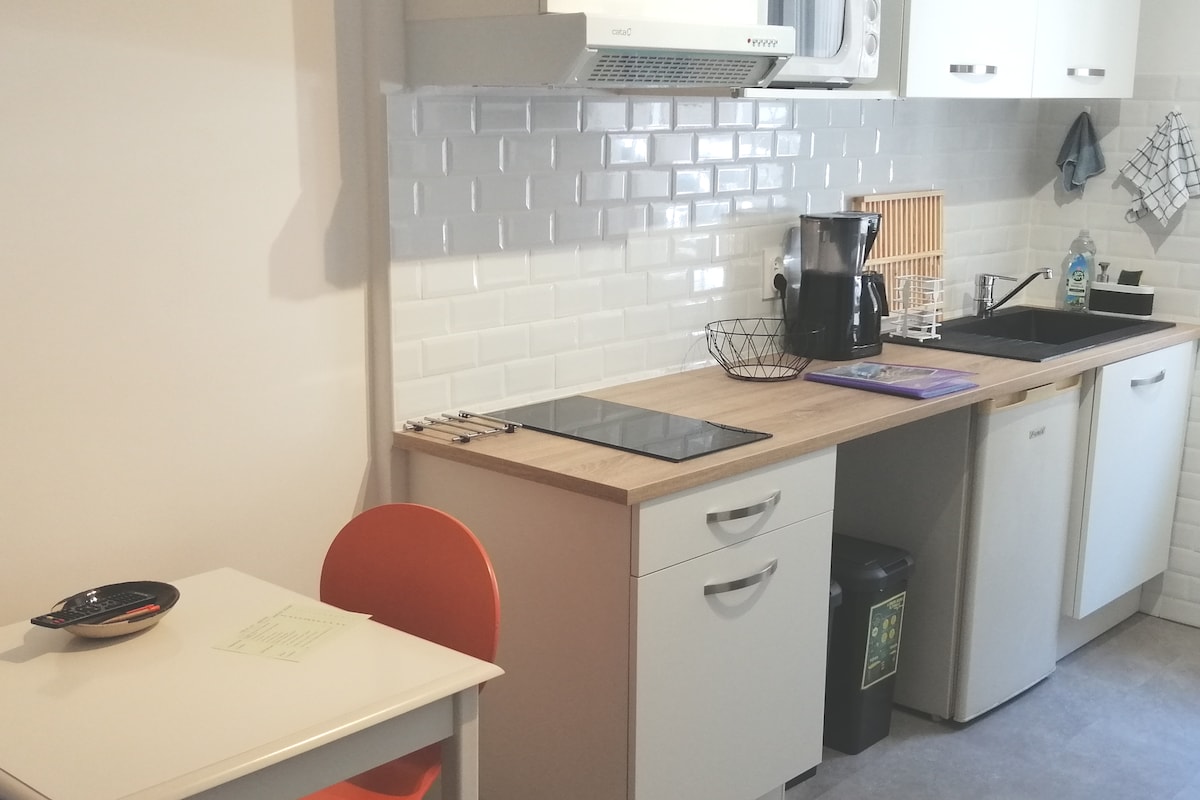 Charmant appartement climatisé de 26 m2 "classé 2 Etoiles" Situé à 10 mn de la gare SNCF et du centre ville, au 3e et dernier étage sans ascenseur, vous bénéficiez d'une belle lumière naturelle, de son volume, et d'une vue dégagée. Entièrement meublé et équipé pour 2 personnes, avec sa chambre séparée et sa douche attenante. Calme Absolu !!! A 10 mn des Halles, et de toutes les animations et commodités qu'offre le centre ville, vous pourrez tout faire à pieds.