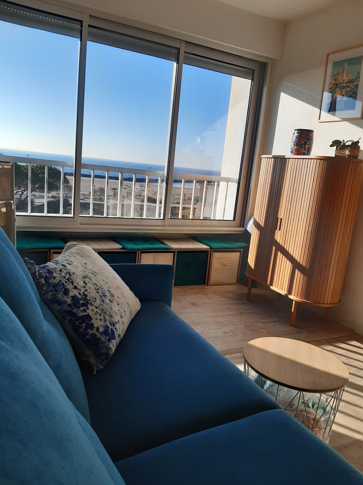 ⛵ Enjoy Sète's climate and atmosphere by staying in this charming apartment. 🐟 On the third floor of a recent building with elevator and secure basement parking. This bright apartment features a large living room with open kitchen, a bedroom with queen-size bed and storage space, a loggia, balcony, shower and separate toilet. Located just a five-minute walk from the town center and buses to the beach. In the immediate surroundings: supermarket, pharmacy and restaurants. Enjoy your stay!