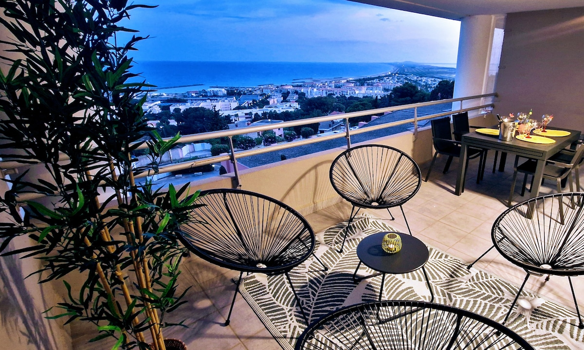 塞特:独立度假木屋,可欣赏Etang de Thau和大海的美景