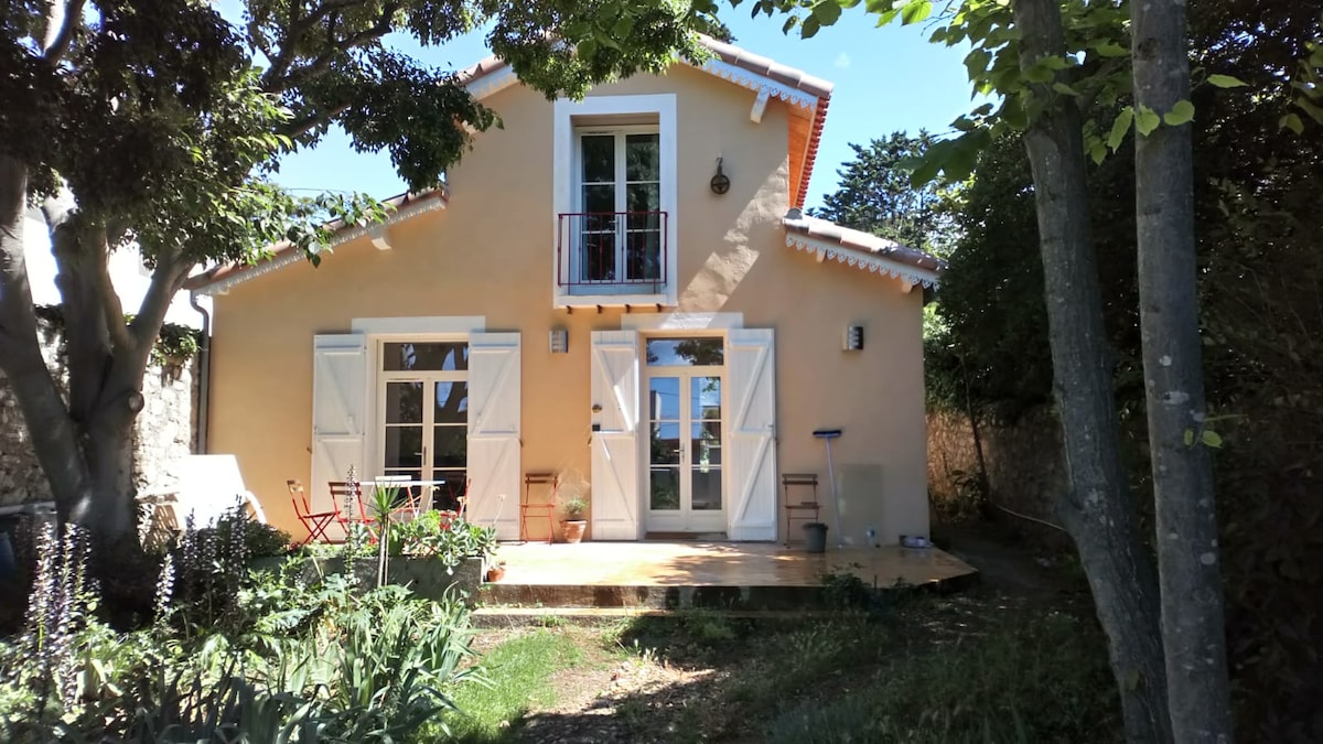 À 5 min à pied du centre ville , Venez séjourner dans une maison entièrement rénovée avec goût et originalité. Vous pourrez profiter d'une terrasse, hissée dans les arbres, avec vue sur le port de Sète. Savourez le calme de la campagne à deux pas du centre ville. Jordan et Camille ne sont pas très loin, à votre disposition et seront heureux de vous conseiller le meilleur de Sète. Poulette et cocotte raviront les enfants de passage et donnerons, qui sait, de bons œufs frais. Parking privé