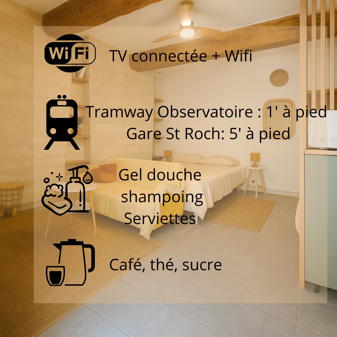 Entièrement rénové et décoré avec soin, ce spacieux appartement de 65 m² climatisé en rez-de-chaussée sera idéal pour 2 adultes avec sa grande chambre ou 4 personnes (canapé convertible dans le séjour ). Salle de bains et toilettes indépendants, cuisine équipée, connexion wifi gratuite. Sa proximité avec les Halles, le centre ville, les arrêts de bus, vous permettra de profiter de Sète et de tous ses restaurants, boutiques, musées, canaux, plages et animations. Parking couvert payant aux Halles