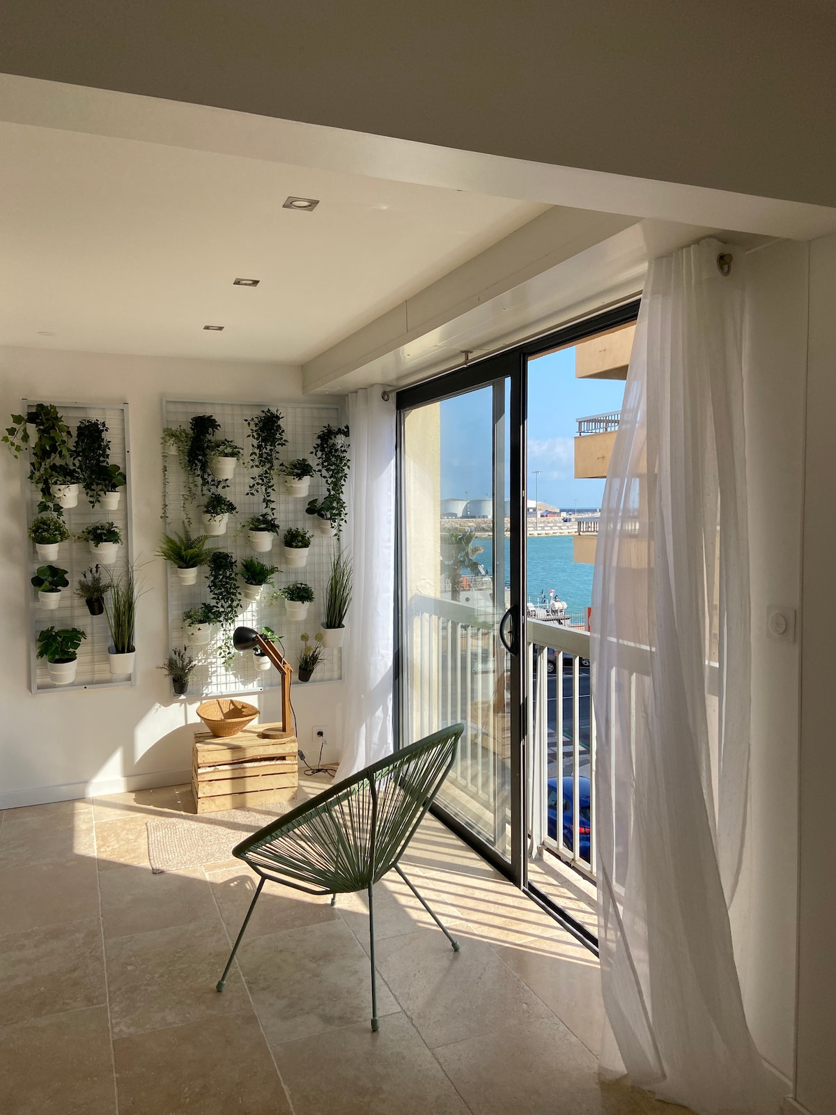 Appartement de 55m2 refait de neuf, climatisé, traversant, super lumineux, entièrement équipé avec une terrasse et une vue magique sur la mer, le port et le Môle . exposition sud-est Situé dans ce coin typique de la ville, au bas du quartier haut, à 5 minutes du centre ville et des Halles, de la Marine et de ses canaux , d'un côté ! de l'autre côté, le Môle, le Site Saint-Pierre et le Théâtre de la Mer. Pour les plages : une mini au bout du Môle, des criques et des plages un peu plus loin!