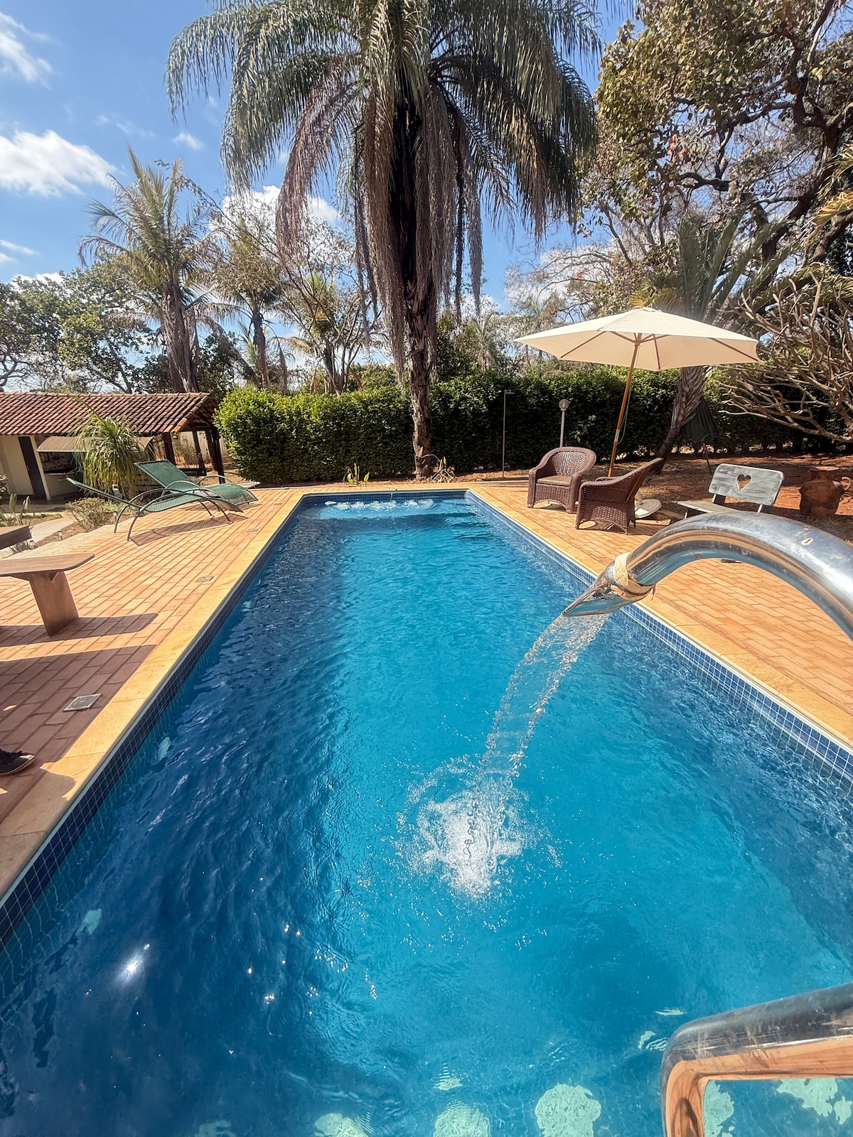 Este lugar único tem um estilo próprio. A área gourmet fica defronte a piscina com mesas e espreguiçadeiras para curtir um sol nos momentos de lazer. Anexo a área gourmet tem um jardim maravilhoso oportunizando os hóspedes desfrutarem a natureza, bem como apreciar as estrelas. Lugar bom para descansar e relaxar curtir a pessoa amada. TV 70 polegadas com acesso a todos os canais. Local seguro e tranquilo.