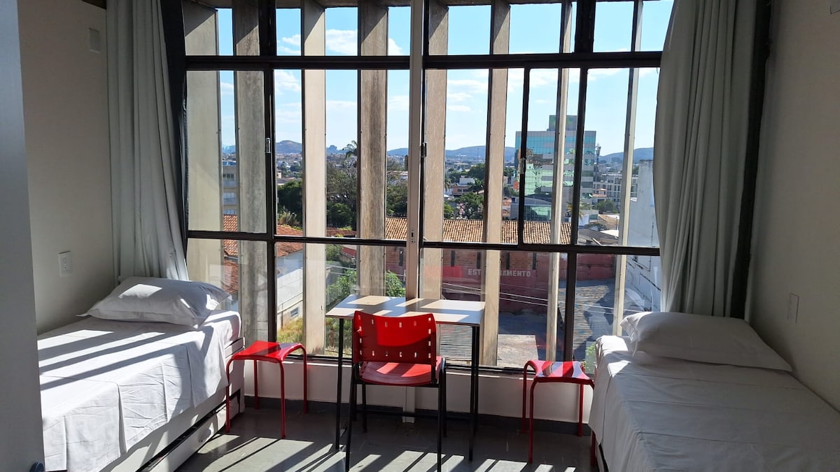 Possui aproximadamente 35 m², com opção de configuração com um quarto grande ou dois pequenos. Localizado no centro. Estacionamento a 50 metros do imóvel (disponibilidade sob consulta) Ar condicionado no quarto, que resfria todo o imóvel. Ventilador de teto nos quartos e na sala. Camas configuráveis para solteiros ou casal. Localizado em um edifício de uso misto, com um andar de uso exclusivamente residencial. Temos outros imóveis no mesmo prédio e na região, total 40 leitos.