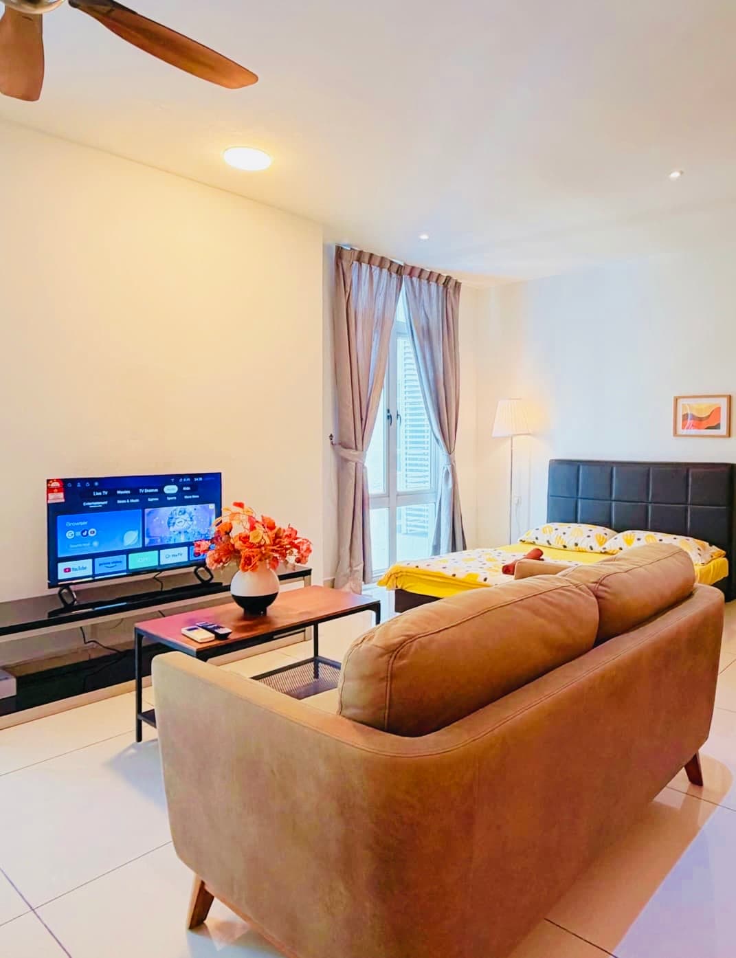(1+1 BR & 1 bathroom) Contemporary modern and cozy condo in the heart of JB city centre. Suitable for 4pax family, friends and business group. **5mins to CIQ, City Square, KSL, Pelangi, and Larkin **8mins to Mid Valley Southkey, Larkin Sentral and Sentosa **15 mins drive to Paradigm mall, Sutera, Skudai and Mount Austin ✔ 4K SmartTV ✔ High Speed Wi-Fi, working tables with extension plug ✔ Washer ✔ Airconds in every rooms. ✔ Atari console, Mahjong, and Board games. ✔ FREE parking for 1 car