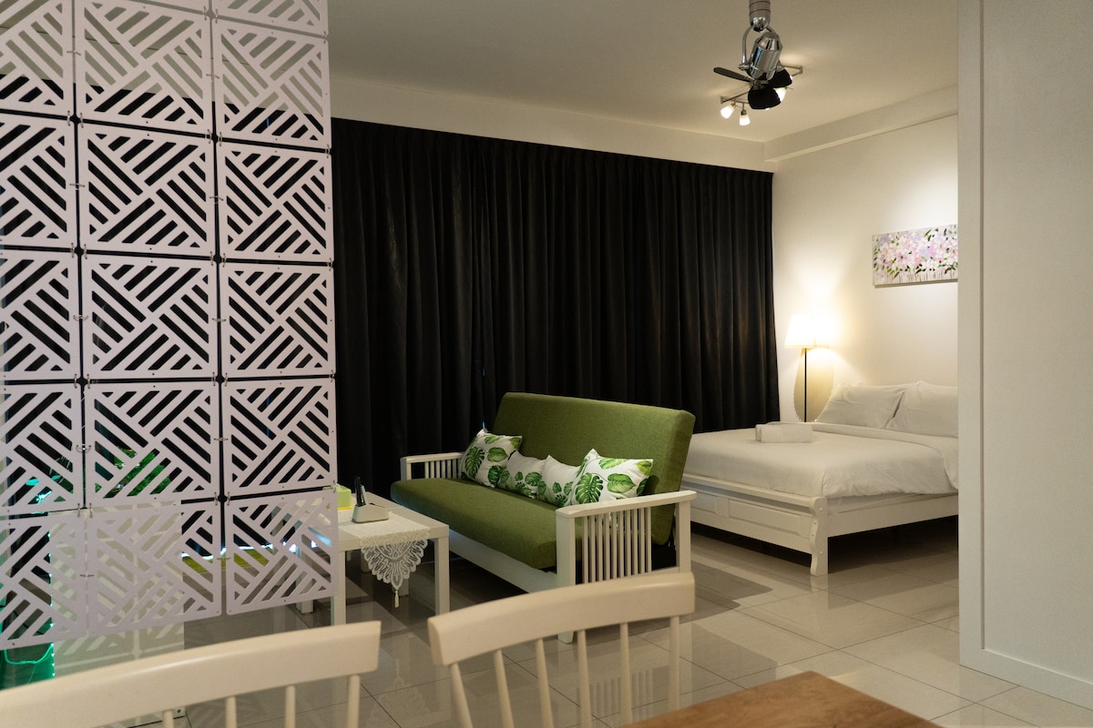 Twin Galaxy Residence! Welcome to our spacious/green and cozy studio unit with amazing city view ❤️, perfect for couple, small families, business traveler/tourist for 2/3 pax. Our unit is located in the heart of Johor Bahru town, the place is surrounded by variety of F&B restaurant, family spa/massage center, convenient shop, night life and etc. Come to enjoy ^^ The house are furnished with 1xqueen-size bed, a sofa (also a sofa bed), dedicated workspace and kitchen with daily essentials :)