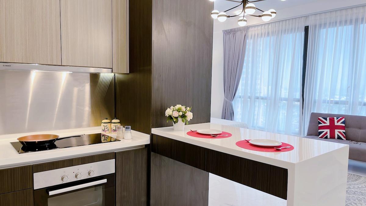 Pinnacle Tower is a spacious and comfortable serviced apartment with a 2-bedroom unit of a total of 1150 sqft. It is located - 7min to City Square Mall & CIQ - 4min to KSL City Mall - 1min walking distance to eateries, convenience store, carwash, pub etc.