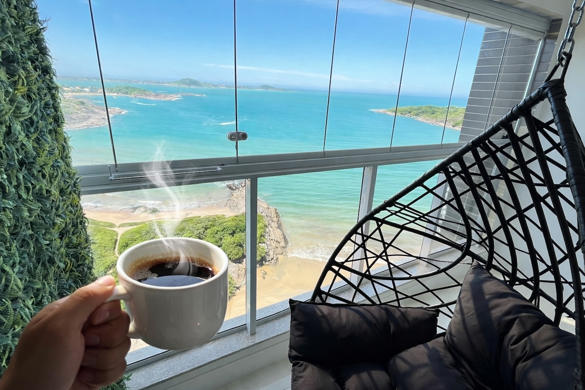 Conforto, luxo e tranquilidade. Isso você encontra em nosso apartamento que foi cuidadosamente projetado para lhe proporcionar uma experiência inesquecível com o MAR. Nesse ambiente arquitetônico clean, moderno, tecnológico e sofisticado você poderá usufruir da sensação de estar em um navio em alto mar. Você merece ter essa experiência! Sinta o cheirinho do churrasco com essa bela vista enquanto relaxa em nosso balanço panorâmico. Você não vai se arrepender!