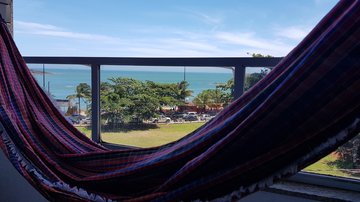 Relaxe com toda a família nesta aconchegante acomodação. O Loft Azul do Mar são 2 suítes confortáveis c/ ar condicionado, TV e wi-fi de frente para a praia de Setiba. O destaque vai para a cozinha e churrasqueira. Temos estacionamento, campinho de futebol, pátio e jardim. Não temos sala de estar e máquina de lavar roupa, mas fica perto de tudo: quiosques, mercadinho, sorveteria e padaria. Temos roupas de cama e banho novas. É ótimo para caminhadas, crianças, c/ praia calma e lindo por do sol.
