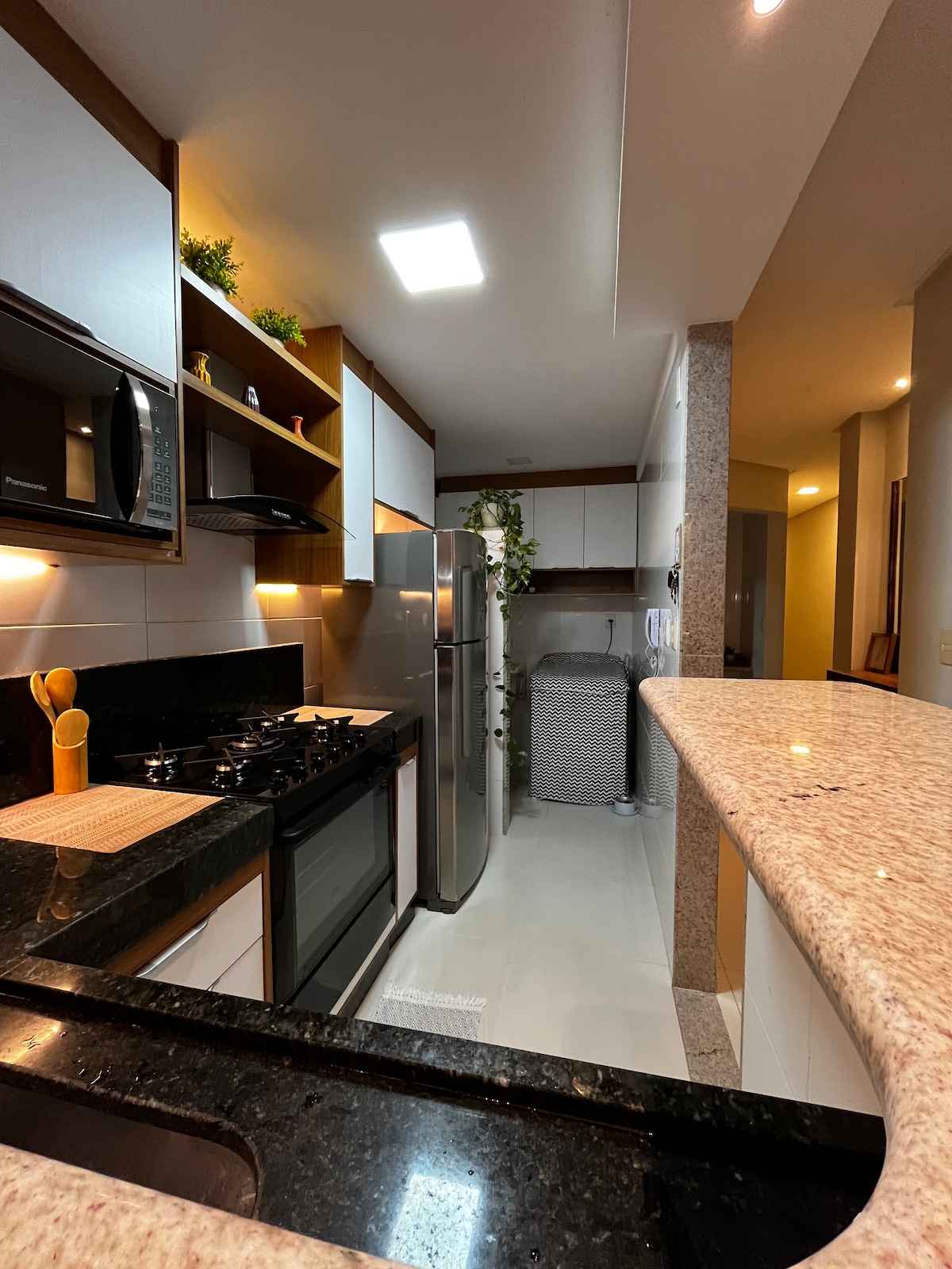Venha viver dias incríveis em um apto novo de altíssimo padrão em uma das praias mais lindas do estado e é só atravessar à rua que vc está na praia! 🛏️4 suítes todas com ar cond. e blackout nas janelas; 🍽️Área gourmet equipada com churrasqueira, fogão, frigobar e uma vista de tirar o fôlego; 🖥️Uma sala equipada com tv smart de 85 pol e home theater; 🎛️Cozinha completa contando com airfryer, microondas, liquidificador e sanduicheira; 🧺Área de serviço com maq de lavar roupa; 🚗2 vagas de garagem.