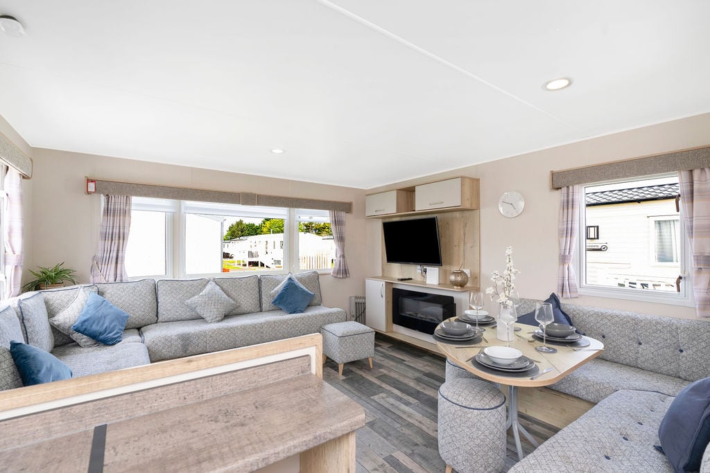 ** CHECK OUT 10AM **Brand New 2023 caravan that is conveniently set between Edinburgh and North Berwick. Perfect place for summer vacations with the children or a relaxing getaway for couples. All bed linen, duvets, pillows and towels are included. 50 “ LCD TV with fire tv stick, BBQ, outside seating, outside games i.e Badminton and Swing Ball, fridge, cooker and microwave. Heating & double glazing in all rooms. Gas fireplace in lounge area. WiFi is available. Dogs welcome (free of charge)