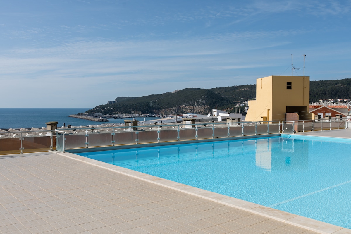 Dream views in a luxury decor over the sesimbra bay, walking distance to the center, best beaches in the coast, restaurants, bars, hiking, wellness. The complex has pool, gardens, office space, a private parking space. T1 apartment up to 4 pax fully equipped to accommodate your dream stay. High speed internet, perfect for digital nomads, office space in the apartment. Close to Lisbon and airport. Stays in Jul/Aug limited to 15 days maximum, June to 3 wks Corporate apartment 163436/AL