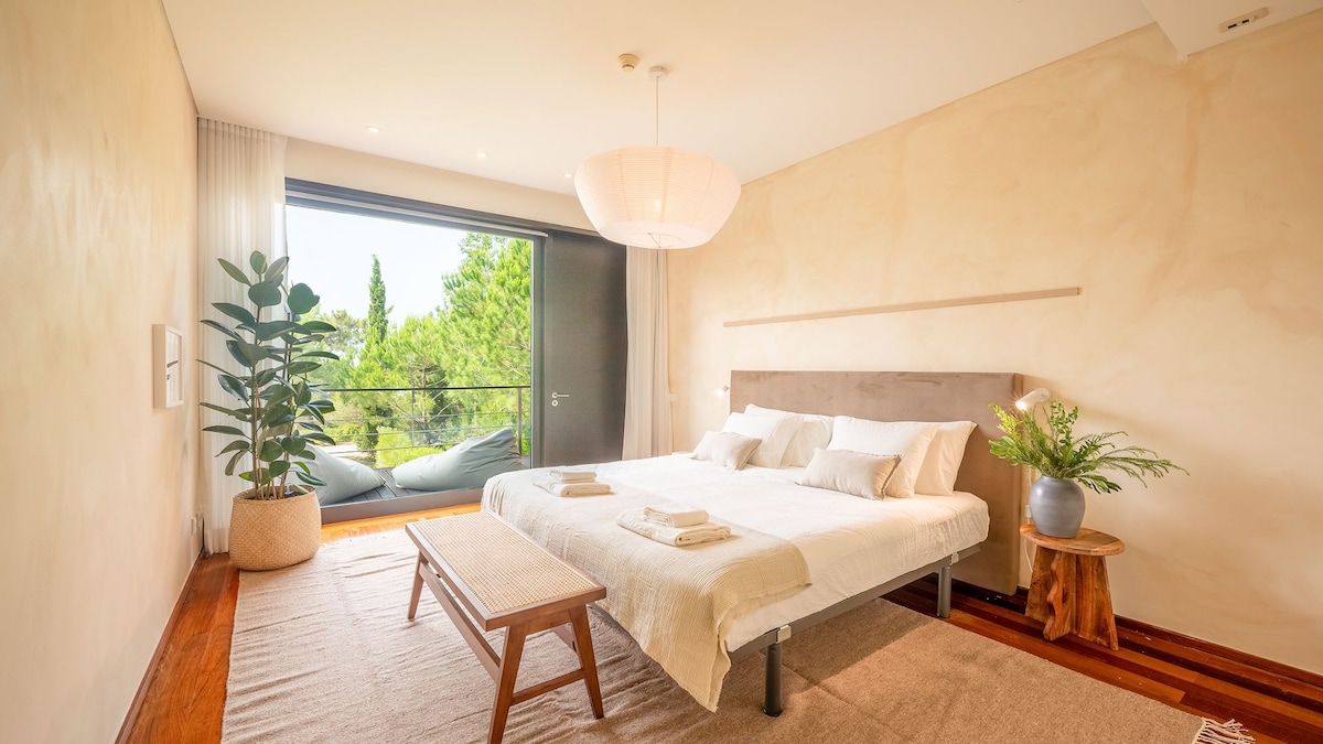 Ideal para um fim de semana a dois ou uma semana de férias em família. Situado na Costa Azul, numa região famosa pelos seus vinhos, natureza, sabores tradicionais e magnificas praias. O enquadramento da paisagem dominada pelos vinhedos e morfologia plana região, desenvolvendo-se num montado de sobreiros onde ribeiros e lagos o tornam singular. There are many places to visit: Serra da Arrábida, Troia, Setúbal with its wonderful fish. You’ll love the stylish decor of this charming place to stay.