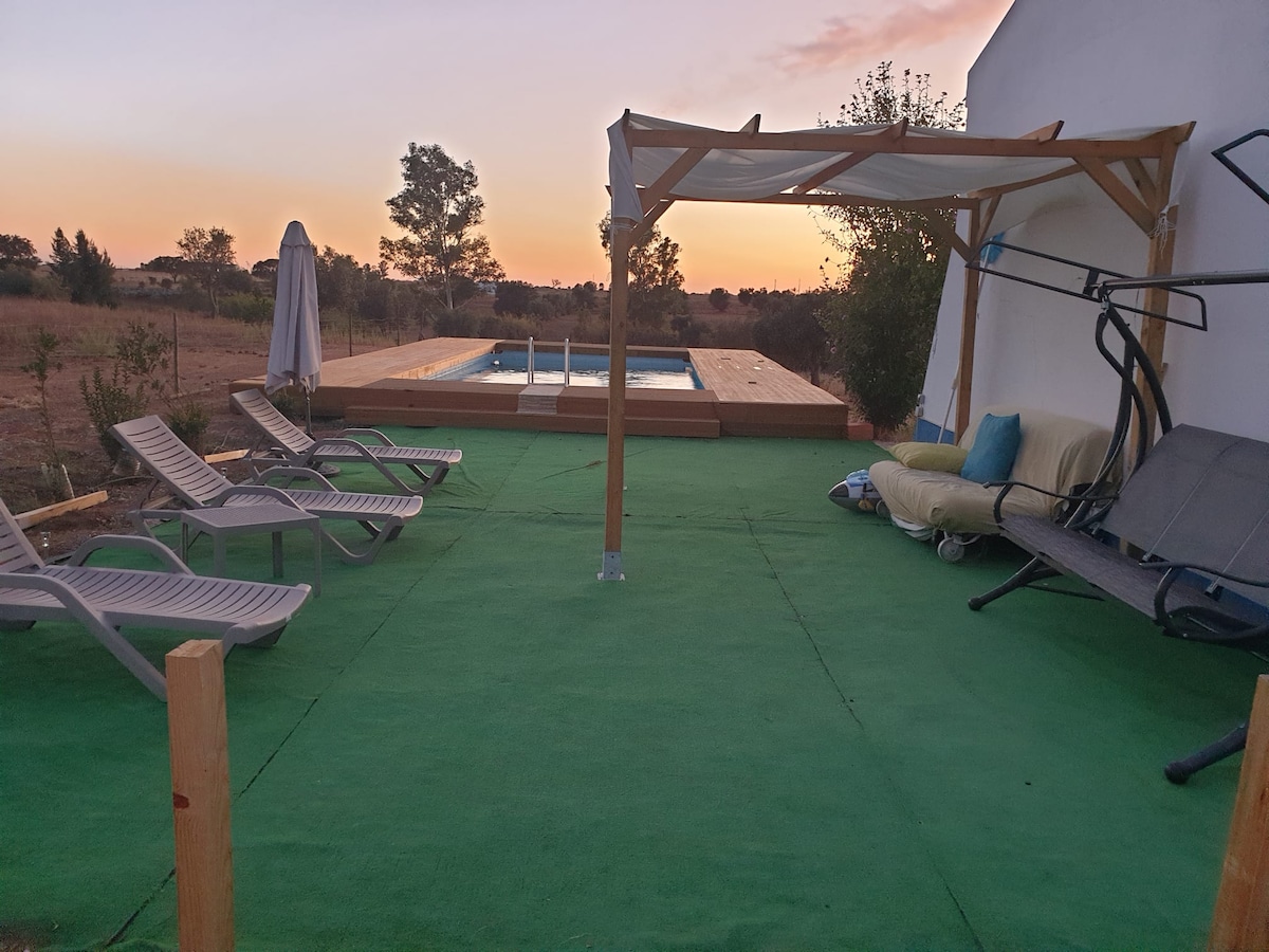 A magnificent place located in the best plains of Alentejo, Monte dos Ribeiros has an area of 3 hectares fenced, with an excellent landscape where tranquility reigns. The house around it has fruit trees, leisure area, barbecue, outdoor kitchen with fireplace and wood oven, outdoor swimming pool, trampoline and bicycles. The house has an equipped kitchen, fireplace, television. It has an excellent area and is cool in summer. The house values privacy, leisure and all the nature around it.