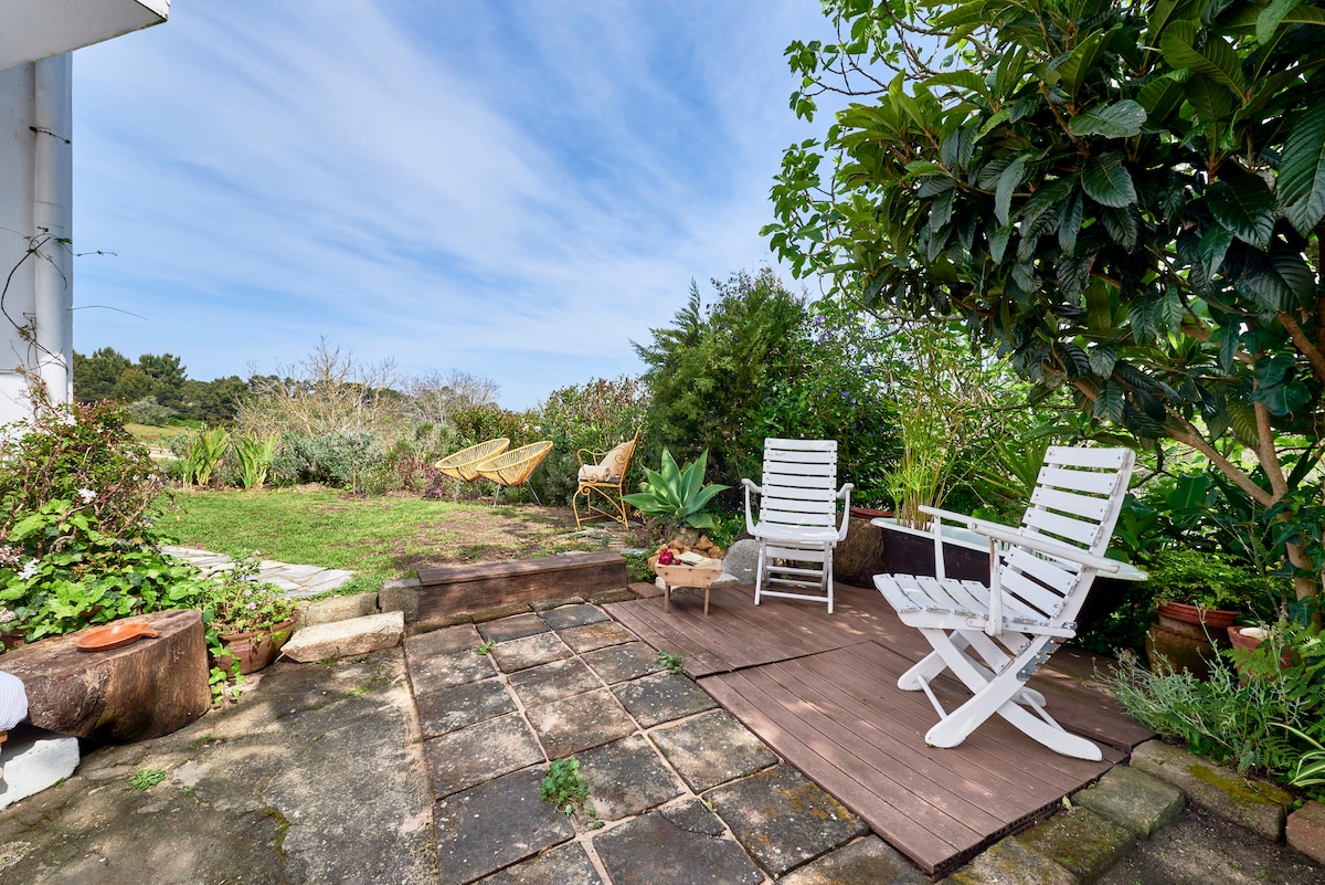 Situada entre a Aldeia do Meco e as suas praias, dispõe de 2 quartos, sala, casa de banho com banheira, cozinha e uma ampla zona exterior com barbecue e relvado. Está integrada numa pequena propriedade agrícola da Padeira do Meco. A zona exterior, aberta para a quinta dispõe de muito espaço, ora privado ora partilhado com os restantes moradores da quinta.