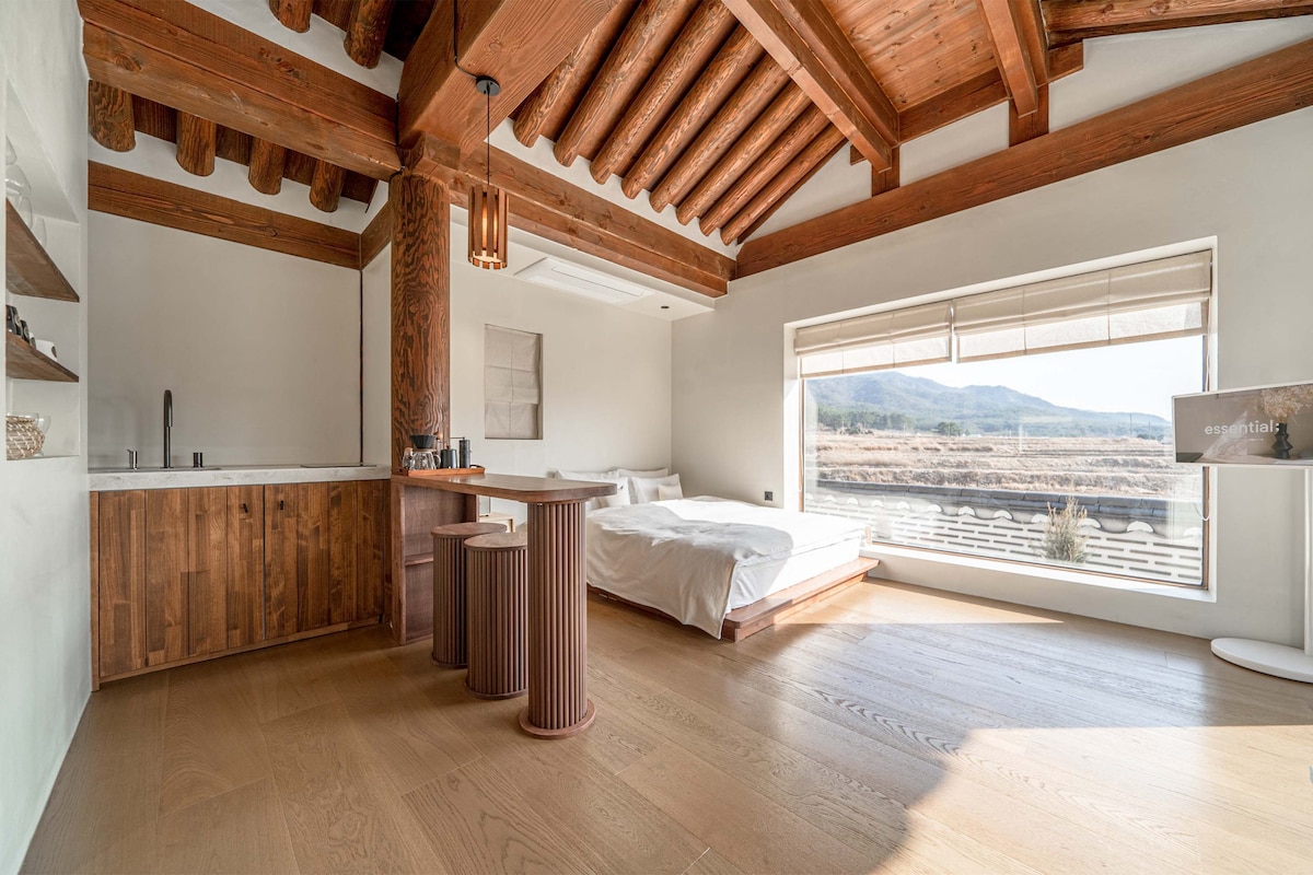 경주터미널에서 도보 3분, 황리단길에서 도보 5분거리에 위치해 접근성이 너무 좋으며, 최대 3인까지 수용가능한 한옥 독채 숙소입니다. 퀸사이즈 침대, 비데, 정수기, 실내 자쿠지, LG 스탠바이미, 마샬 블루투스 스피커, 빔 프로젝터까지 모두 갖추고 있는 프라이빗한 신축 독채 숙소입니다. 전통적인 한옥 인테리어와 현대적인 감각을 모두 잡아 고즈넉하고 아늑한 한옥에서 추억을 쌓아가세요.