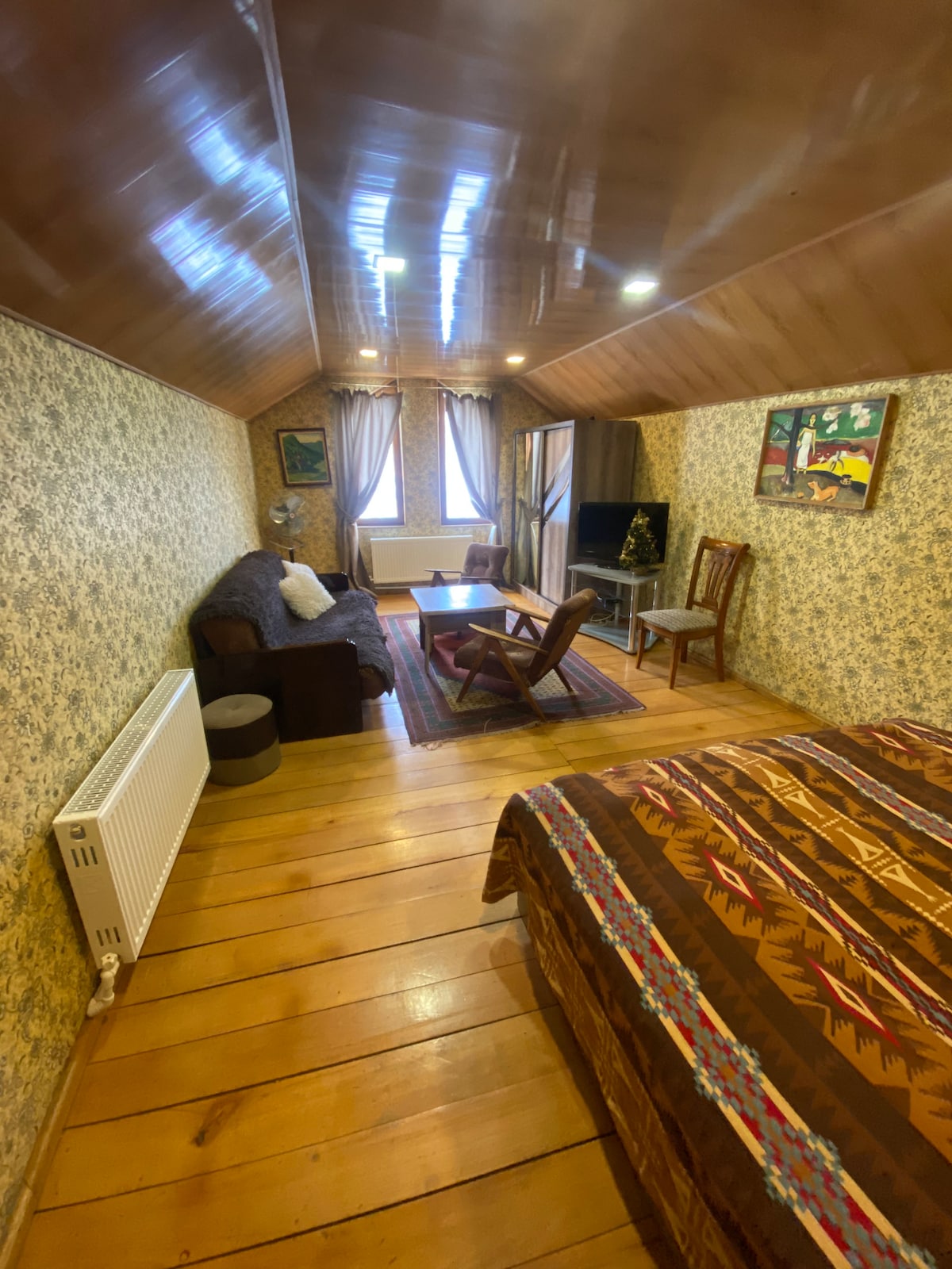 Насладитесь отдыхом в уютном доме, построенном из камня и дерева, с уникальным видом на горы и зелёные склоны Дилижана. Внутри — тёплая атмосфера и современный комфорт: просторная гостиная с электрическим камином, оборудованная кухня, Wi-Fi и всё необходимое для вашего удобства. На территории есть беседка и зона мангала — идеально для ужинов на свежем воздухе и душевных вечеров с семьёй или друзьями. Спокойное место, чистый воздух и вид на горы создают ощущение уединения и гармонии. .