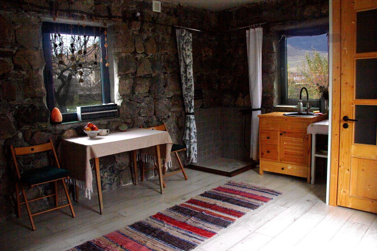 In Focus Point Drakhtik coworking-guesthouse, you can enjoy the perfect serenity and tranquility in harmony with nature. The guesthouse overlooks a beautiful landscape of alpine meadows, the Drakhtik River, and the mountains of Areguni. Furthermore, all the necessities are provided for the guests to work and create.