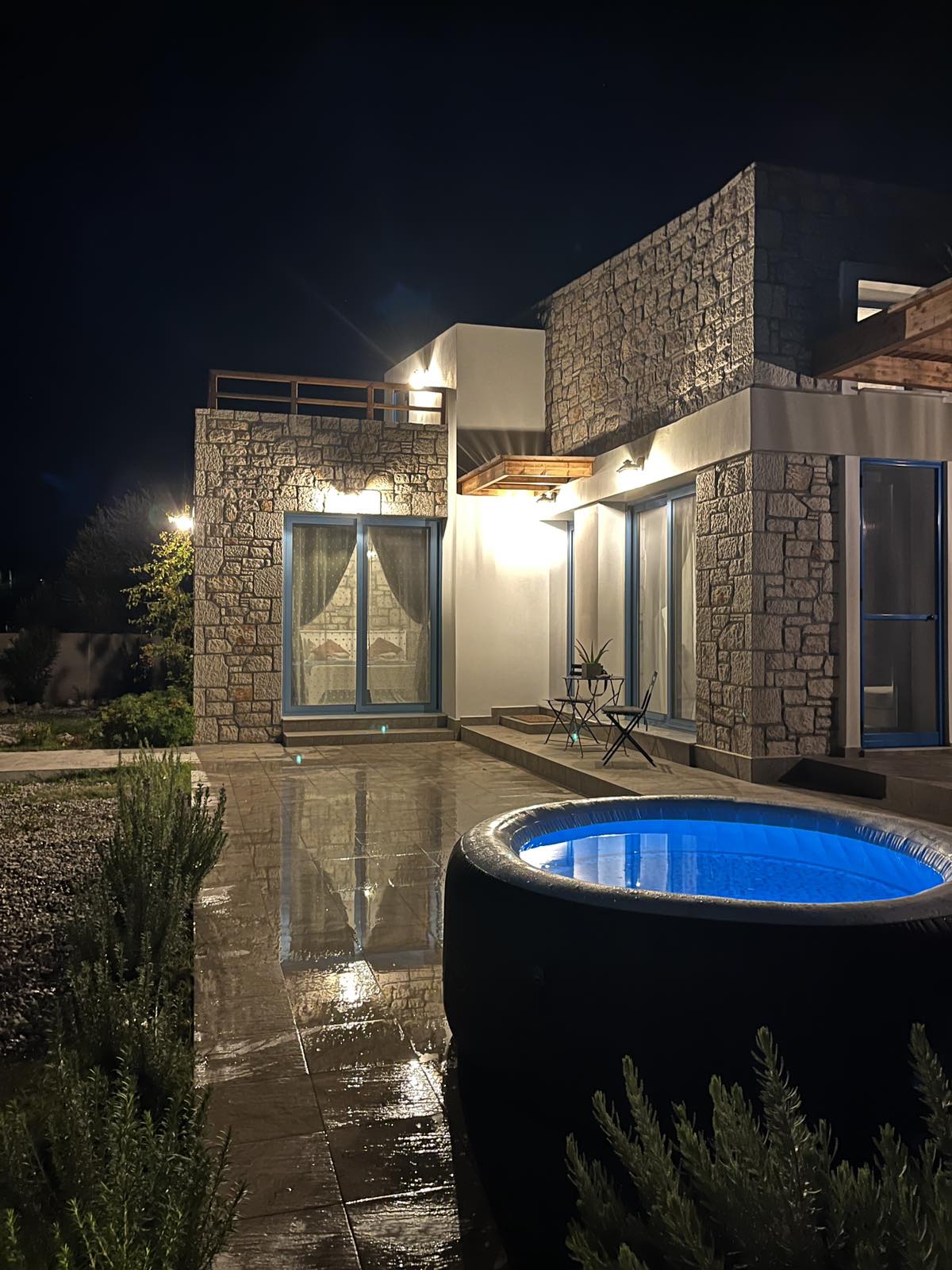 An accommodation that combines the Greek island character with the comforts of modern life. A peaceful retreat with an idyllic view of the Aegean Sea, offering the relaxation everyone seeks on vacation. Enjoy a private heated spa for ultimate tranquility, a cozy patio living room overlooking the sea, a fully equipped kitchen, a bathroom, and a bedroom with a double bed. Surrounded by a large Mediterranean garden with parking, it’s just 3 minutes by car or 10 minutes on foot from Stegna beach.