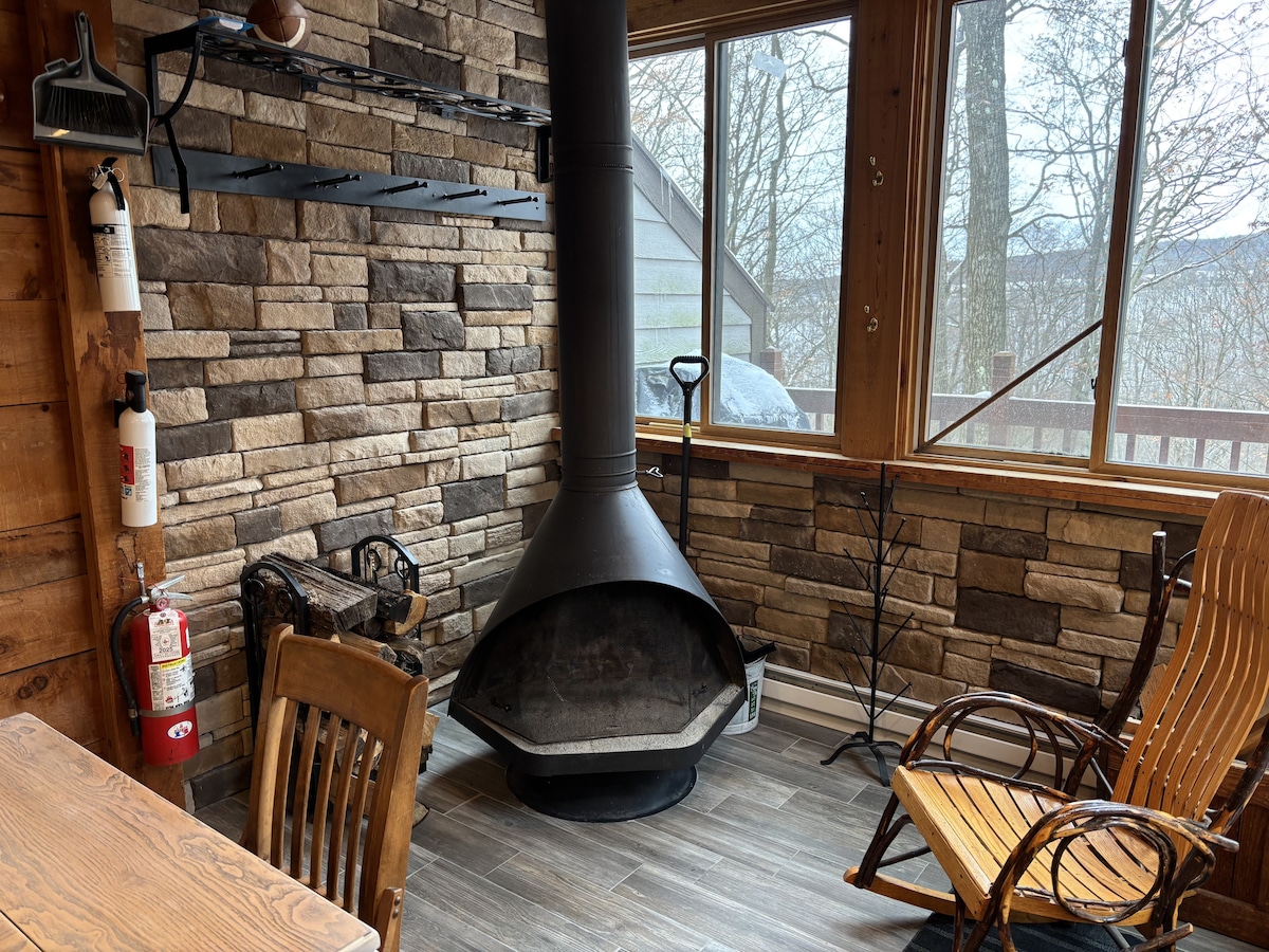 Mountaintop Hideaway is a family favorite retreat for those who want a taste of what the mountain has to offer. Conveniently located, steps from the shuttle stop to the slopes, 2 min walk to swimming pool, playground, bocce, basketball, tennis and pickleball courts or play a round at the golf course! After a long day of mountain fun, cozy up near the fire to relax or enjoy the deck views overlooking the pond. Get ready for a mountain adventure at our all season getaway at Hidden Valley Resort!