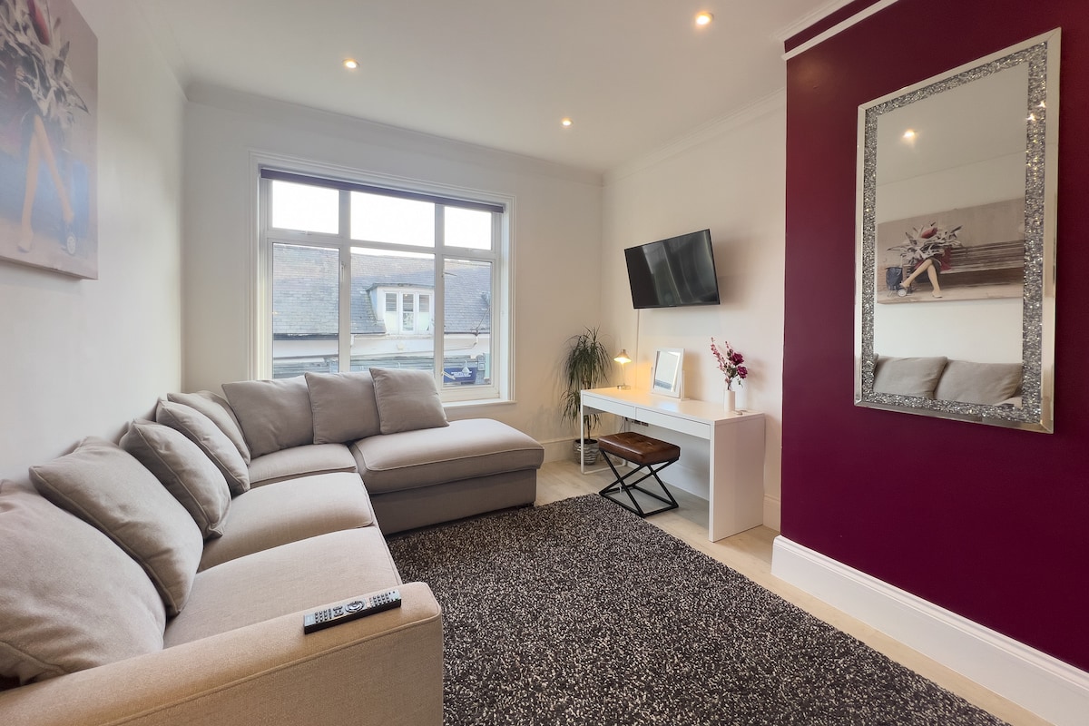 Professionally designed and newly developed self contained annex, part of a historic grade II listed building from the 17th century. Centrally located in Sevenoaks town, on the High Street, opposite Sevenoaks School and Knole Park National Trust site. Within the Kent Downs Area of Outstanding Natural Beauty (AONB). Private off-street parking and hot tub (both free of charge) and EV charging available. Pets welcome.