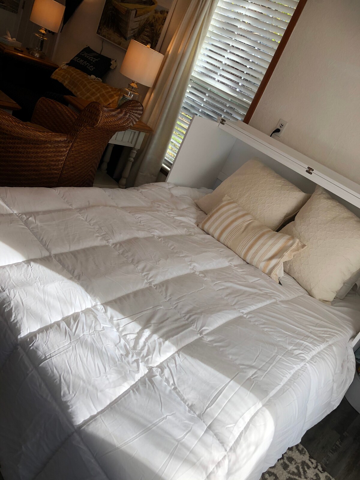 This is a small house with private parking close to Baltimore and Annapolis. I have one queen size Murphy bed, one single pull out couch. It has an updated kitchen, updated bathroom, walk-in closet, Internet and heating and cooling. I also have a pellet stove. my kitchen is fully stocked with dishes, knives, forks, pots and pans. The bathroom has towels and rugs. I tried to add all the amenities to make it as comfortable as home. Look at pet rules under the other things to note section.