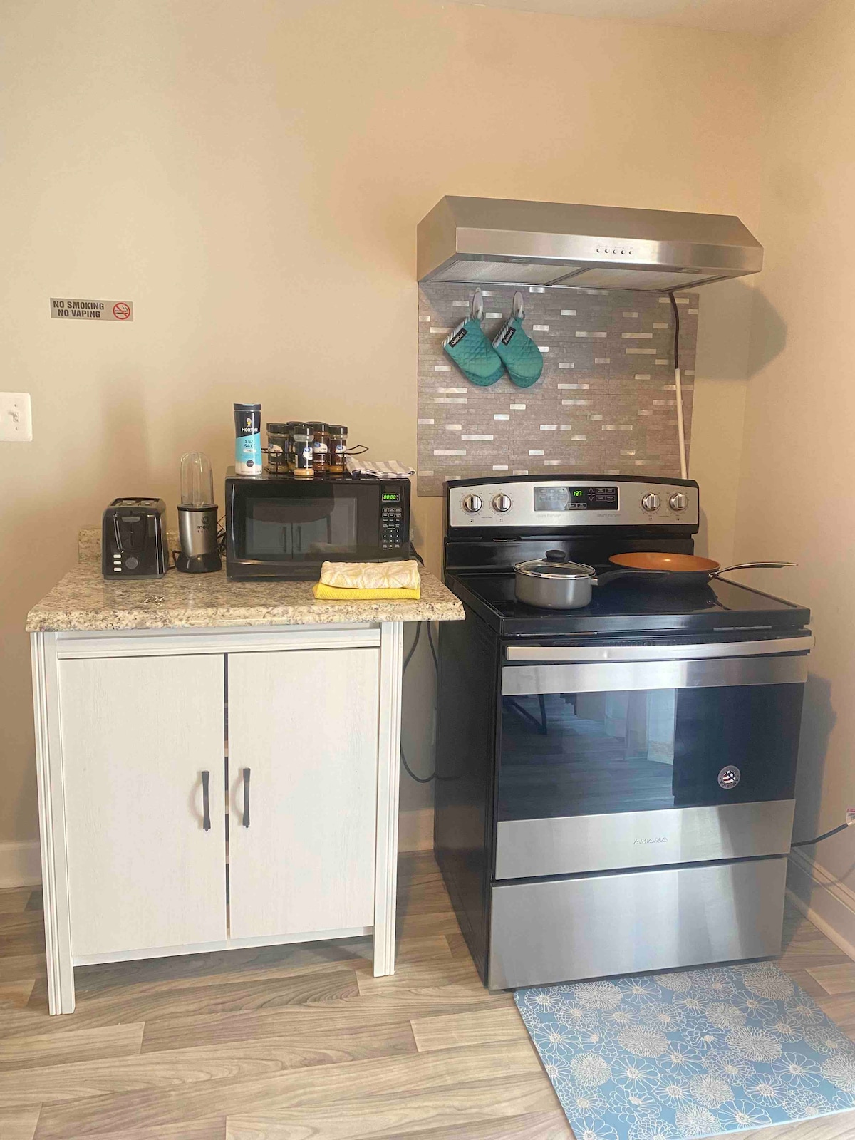 Unwind in this tranquil, stylish in-law suite just minutes from BWI. Located on the lower level of a modern townhouse, it features a private entrance, inviting dining area, spacious bathroom, and a cozy bedroom with a brand-new queen bed and HD TV. One well-lit parking spaces add convenience. The kitchenette includes a mini fridge, air fryer, microwave, coffee maker, and essentials for a relaxing, comfortable stay, with easy access to shops, dining, and major highways.