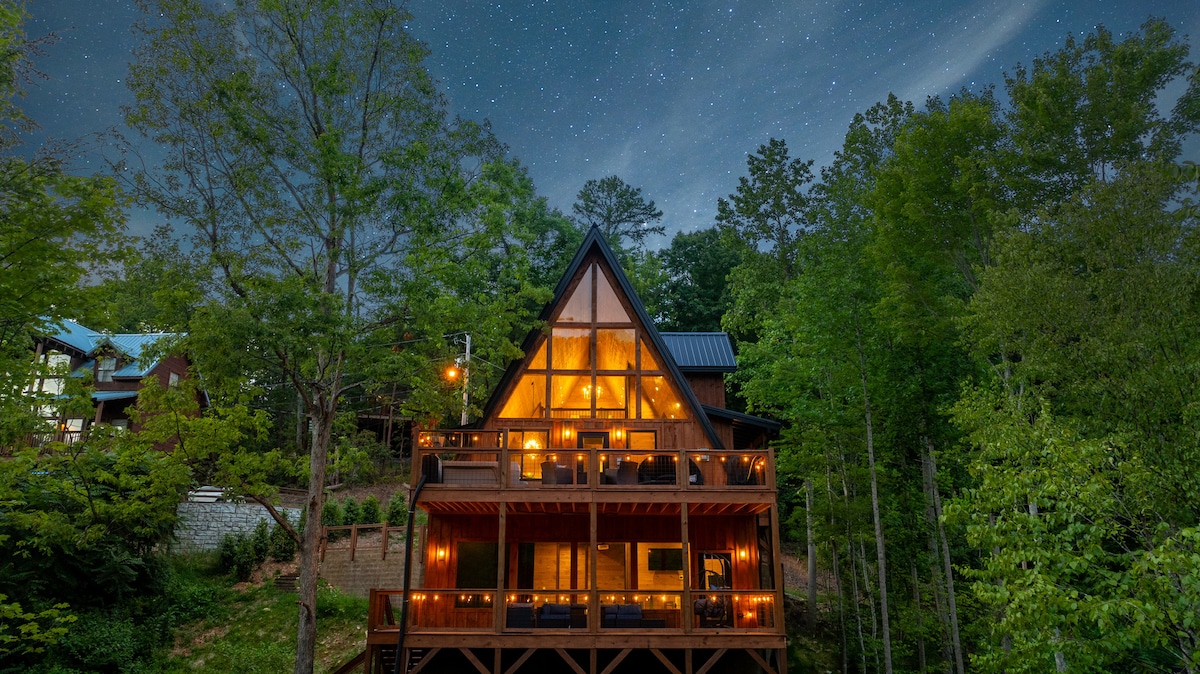 Escape to The Nocturnal Nest, a hidden gem 💎 tucked away amidst the beauty of nature🍃. This cozy cabin offers an idyllic escape for lovebirds celebrating milestones or simply for the fun of it🥰! Create your own luxurious paradise🍹🏝️at home with a personal theater, spacious outdoor patio with a fire pit, hot tub, and BBQ grill. 📍17 min to Pigeon Forge 📍25 min to Gatlinburg 📍57 min to Knoxville ✈️ 📍18 min to Dollywood 🎢 📍24 min to National Park 🌲 📍30 min to Ober Ski Mountain 🏂⛷️