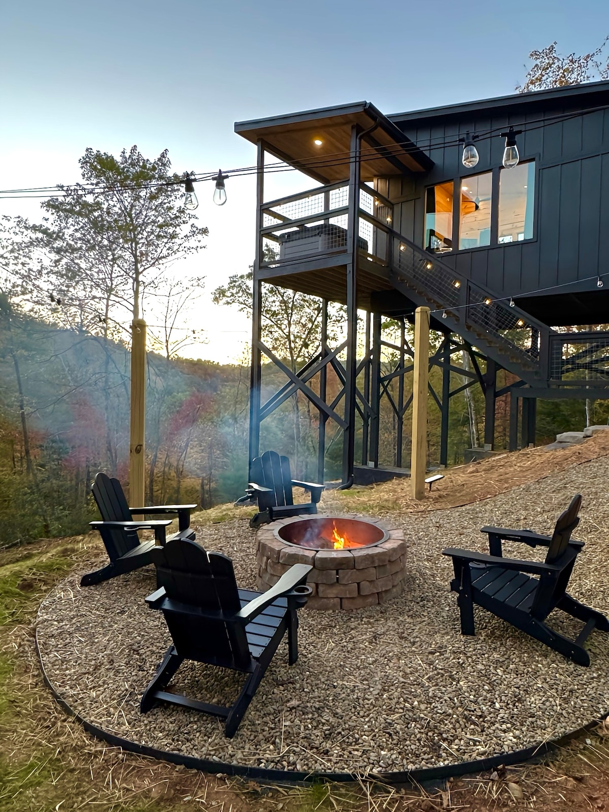 豪华树顶度假屋!热水浴缸、火坑和景观!