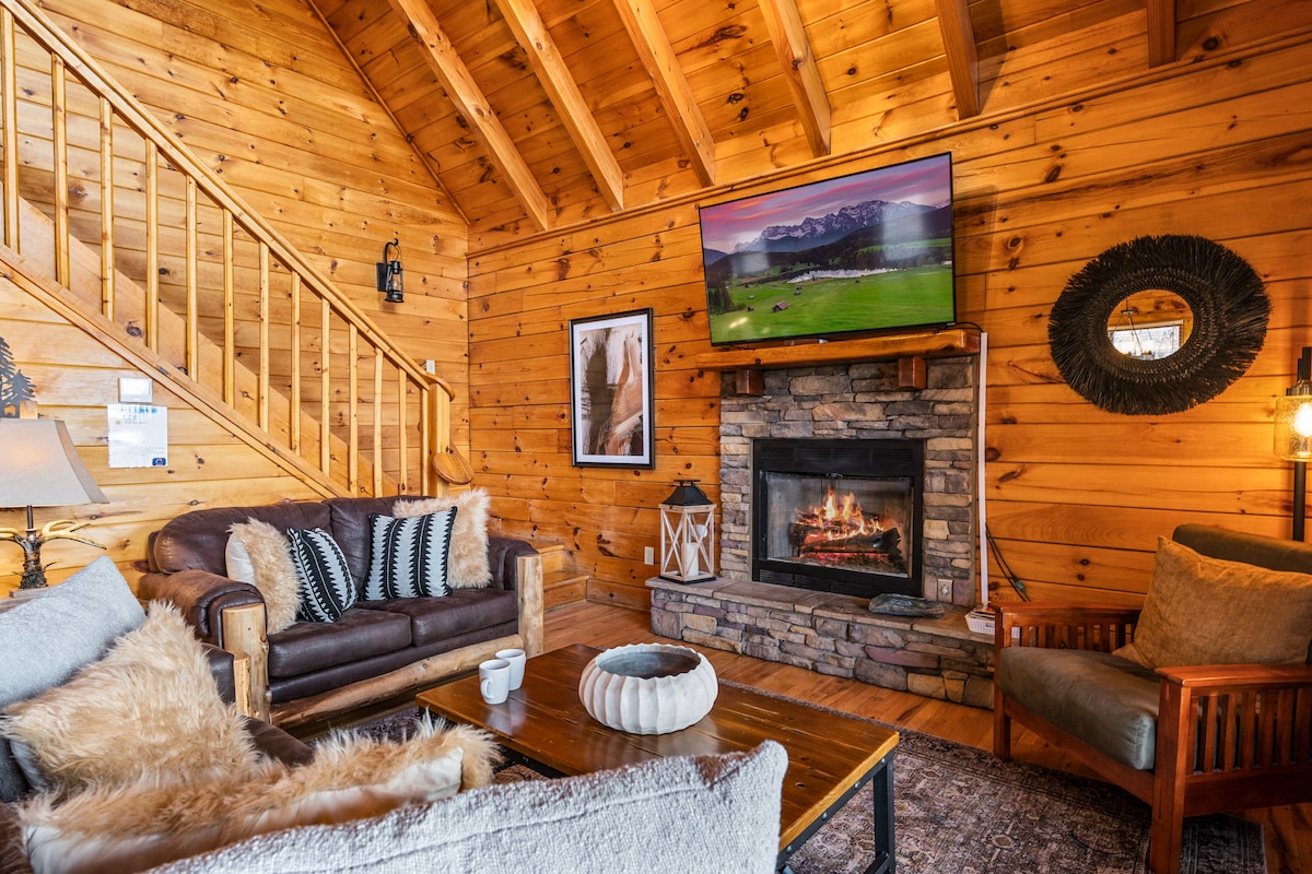 Escape to our rustic-modern cabin, the perfect romantic getaway for two. Enjoy stunning mountain views from your private hot tub and firepit. This cozy retreat features a king-size loft bed, a fully equipped kitchen, and an electric fireplace. Located less than 30 minutes from Pigeon Forge and Gatlinburg, it's the ideal base for exploring the Smoky Mountains. Unwind, reconnect, and create lasting memories in this unique space.