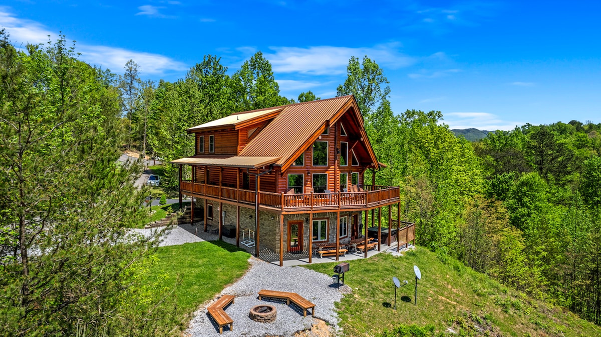 ✔5 *Private* Bedrooms ✔Rustic Modern Design ✔Fire Pit ✔Standalone Game Cabin ✔Hi-speed Wi-Fi <800+ Mbps ✔Cathedral Windows ✔Chef’s Kitchen ✔Large Deck & BBQ Grill ✔Hot Tub ✔Community Pool ✔Catch & Release Pond With privacy & room to roam, this mtn oasis is a welcoming cabin retreat. When it's time for adventure & exploring the Smoky Mtns, you're *just 3.6mi* from the Nat'l Park [Airbnb added AI to the listing, it is NOT 40mi] This treetop refuge is a perfect mix of comfort & convenience.