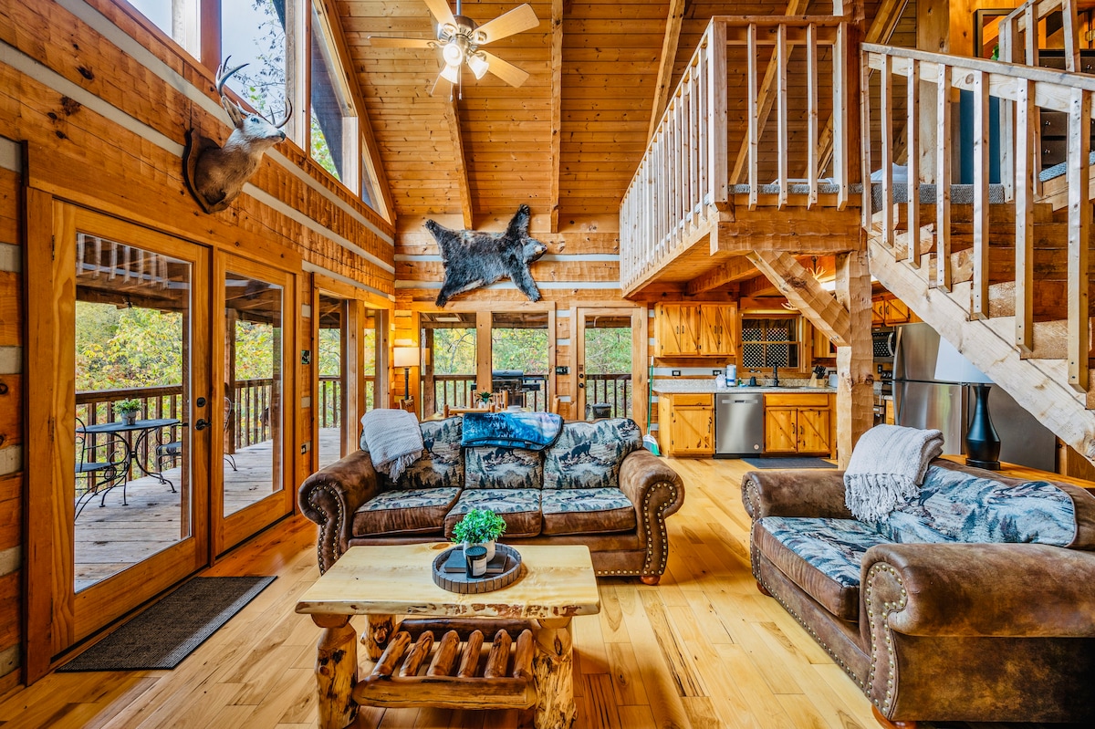 Stunning Mountain Views - Modern Comforts! This two-level cabin offers breathtaking mountain vistas. Whether you’re relaxing on the log rockers on the wrap-around decks, soaking in the jacuzzi whirlpool tub upstairs, or unwinding in the bubbling hot tub on the back deck, the scenery will leave you in awe. Conveniently located 25 minutes from the Great Smokey Mountains. •Two-level cabin •Mountain vistas •Pool table •Hot tub •Jacuzzi •Large smart TV •Patio Swing