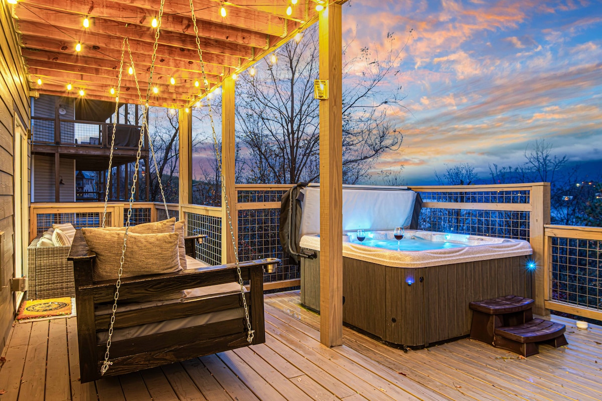 💖 Couples/Family Retreat 🌳 6-Acre Getaway & Mountain Views 🏡 Balcony 🛀 Sauna 🏃♀️ 5 Min walk (0.2mi) to bus stop for a quick ride to Downtown 🚲 1 Min (0.3mi) to Rocky Top Sports World 🏊♀️ 1 Min (0.4mi) to Community Center (Pool|Gym|Bowling|more), Library and Arts & Crafts District 🚌 5 Min to National Park 🚘 20 Min Scenic Drive to Pigeon Forge 🔥 Firepit & Swings 🛜 High Speed Wi-Fi 🛌 King Beds, Couch & Crib 🕹️ Arcade & Smart TVs 🐾 Seasonal Views of Wildlife 🍗 Charcoal Grill