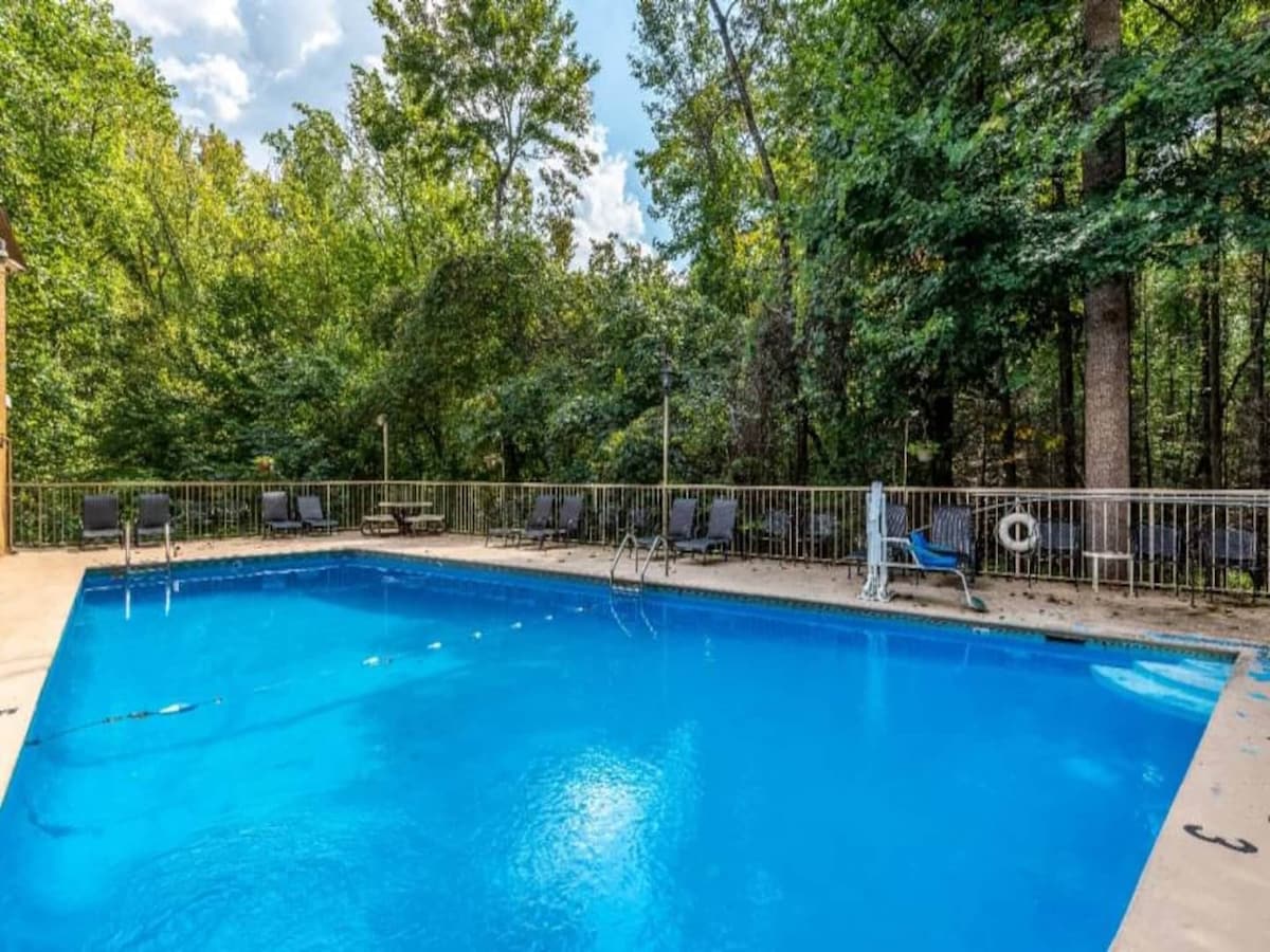 Hip and newly remodeled with all the cool and modern amenities! Not only are you one mile from LeConte Center, Cal Ripken Baseball Parks, The Island but also the heart of Pigeon Forge! In the woods but close to the action! You will have a fully private studio with beautiful walk-in shower, 42” flat screen smart TV, mini-kitchen for meal prep & a 10” memory foam mattress platform queen bed.