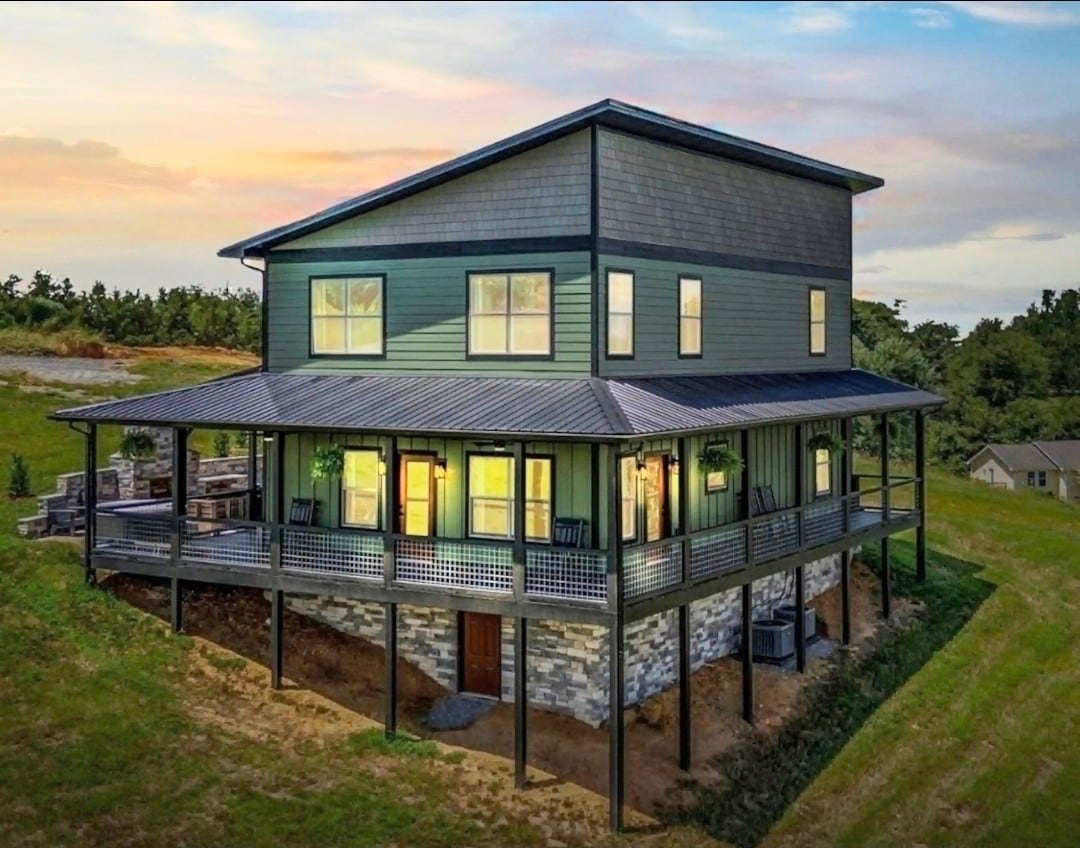 Take it easy at this unique and tranquil getaway. Located on our private 22 acre farm. This house has everything you need to enjoy a wonderful vacation. There is a silo grain gazebo with firepit to sit back and watch the sunsets and sunrise. Relax on the back porch with Hotub, seating and a small table to have breakfast. You can walk around the field and barn and see the turkeys, sheep and Highland cows as the graze.This property is close to Pigeon Forge and Dollywood.Book your next adventure