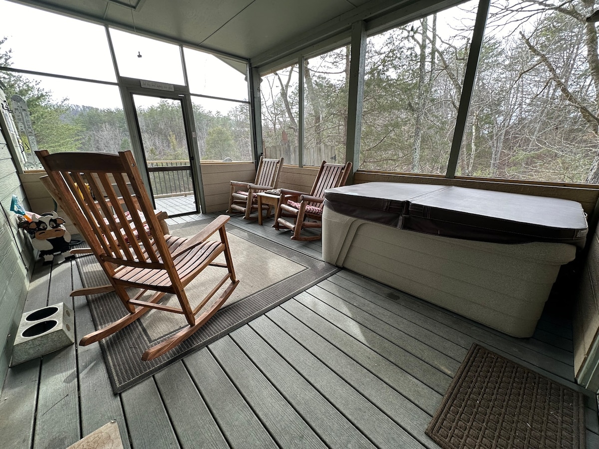 烟雾山景,靠近加特林堡,热水浴缸,游戏室
