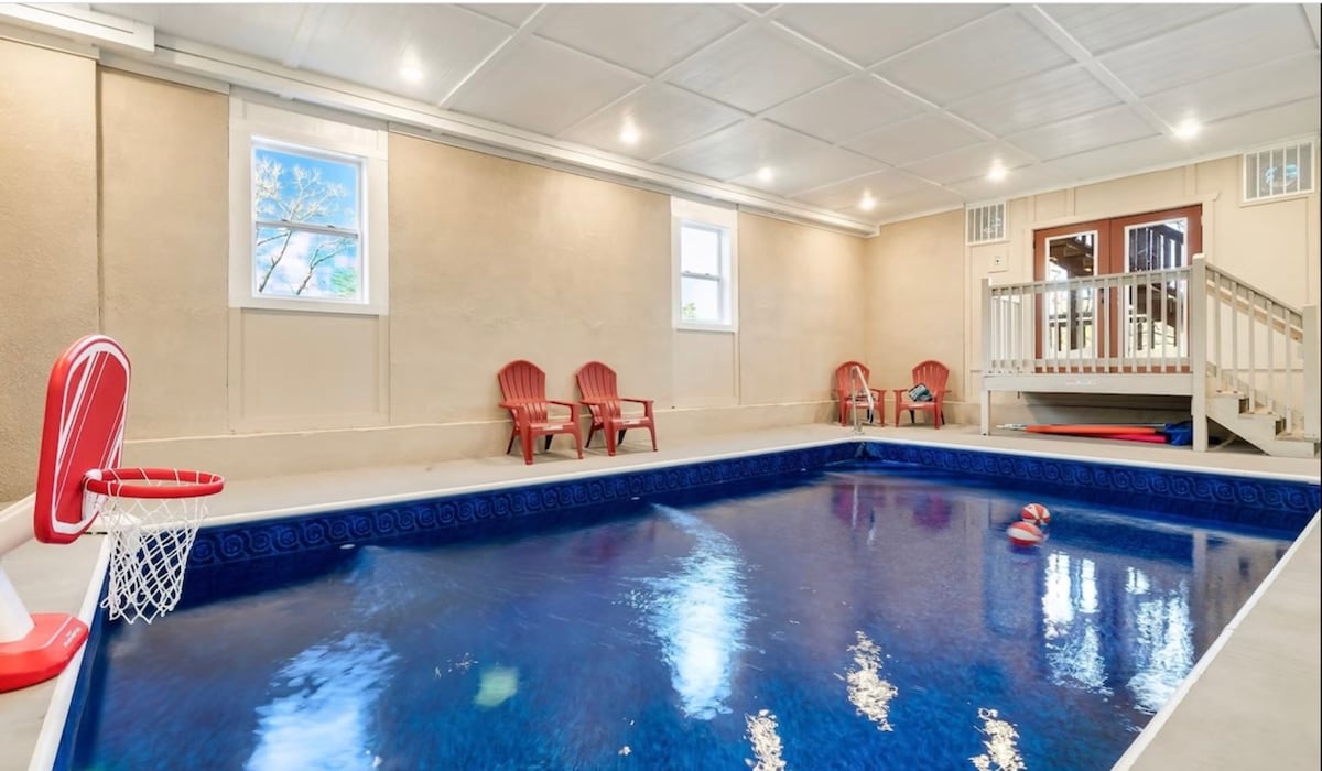 室内泳池@ 83°、火坑、游戏室、热水浴缸